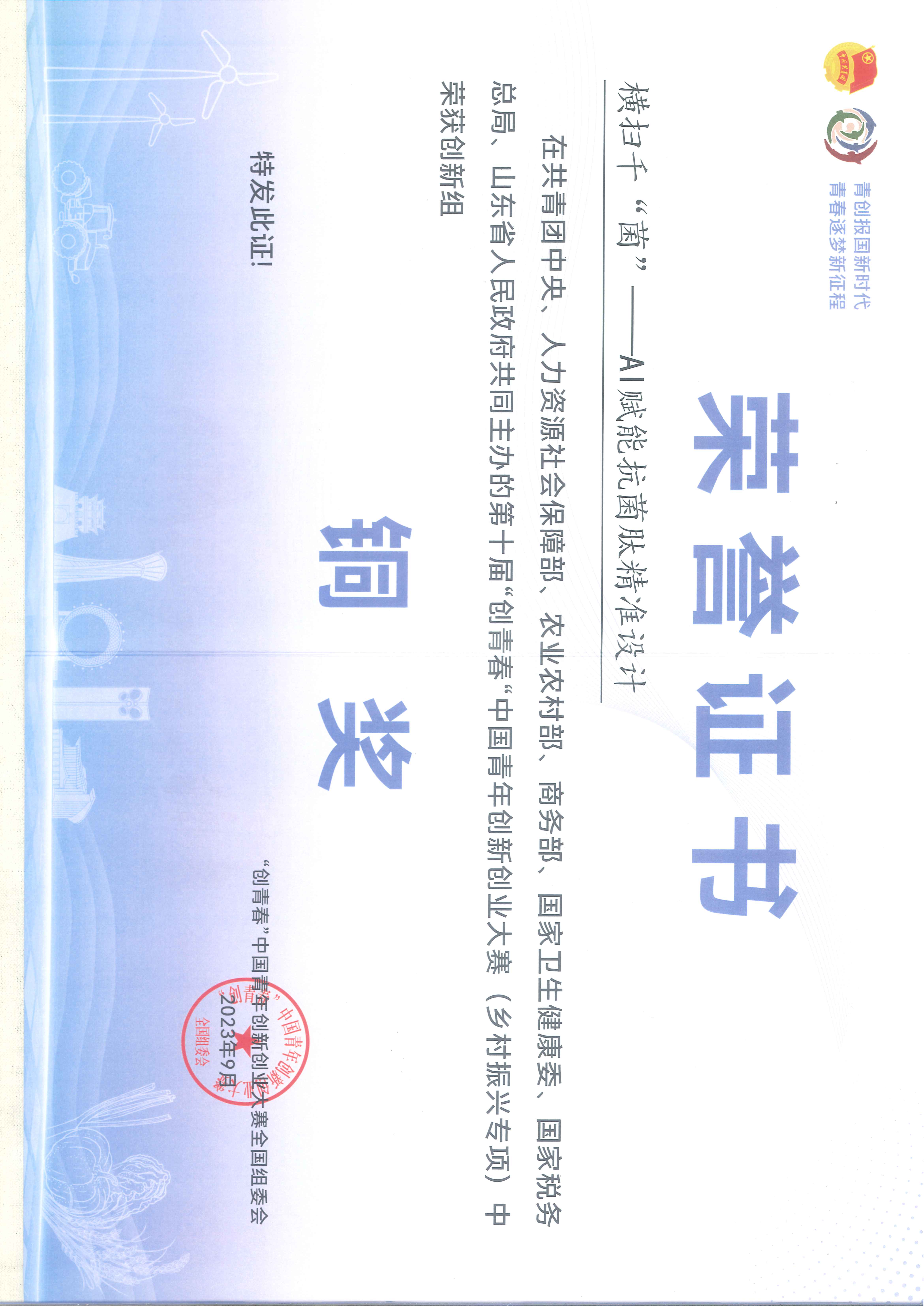 9月17-19日,由共青团中央、人力资源社会保障部、农业农村部、商务部、国家卫生健康委、国家税务总局、山东省人民政府共同主办的2023年中国青年创新创业交流营暨第十届“创青春”中国青年创新创业大赛(乡村振兴专项)在山东省潍坊市举行。本届大赛以“青创报国新时代、青春逐梦新征程”为主题,大赛自6月份启动报名以来,共吸引全国3500余个项目团队、1.2万余名创新创业青年报名参赛。