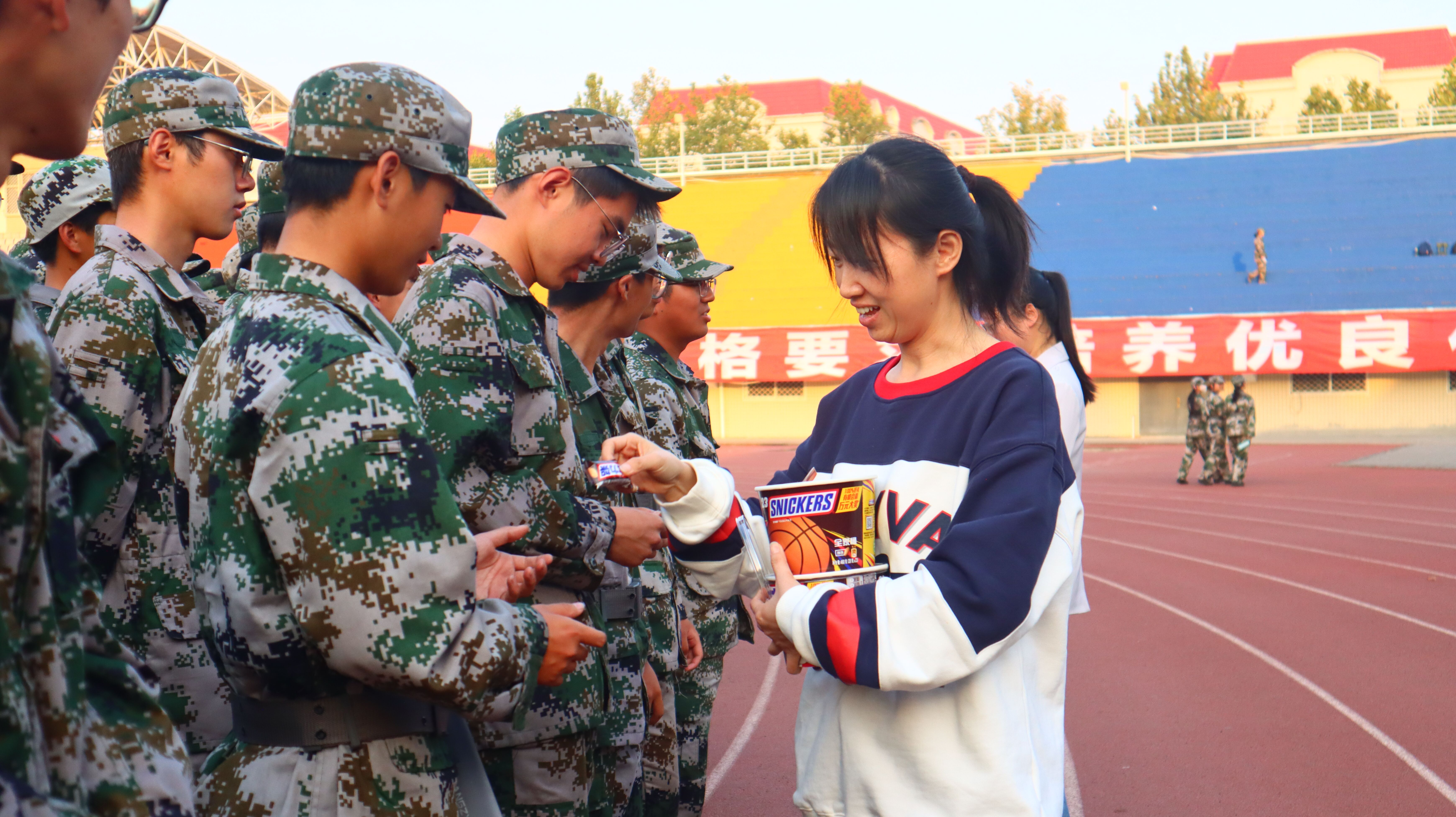 随后,学院领导和辅导员老师到队列方阵前为军训教官及参训学生分送慰问品,与军训大学生亲切交流,听取大家的感受和收获,同时向他们表达了学院的关心与关注,鼓励他们坚持到底,把军训中养成的良好习惯和作风发扬光大,走好学习成长的新征程。