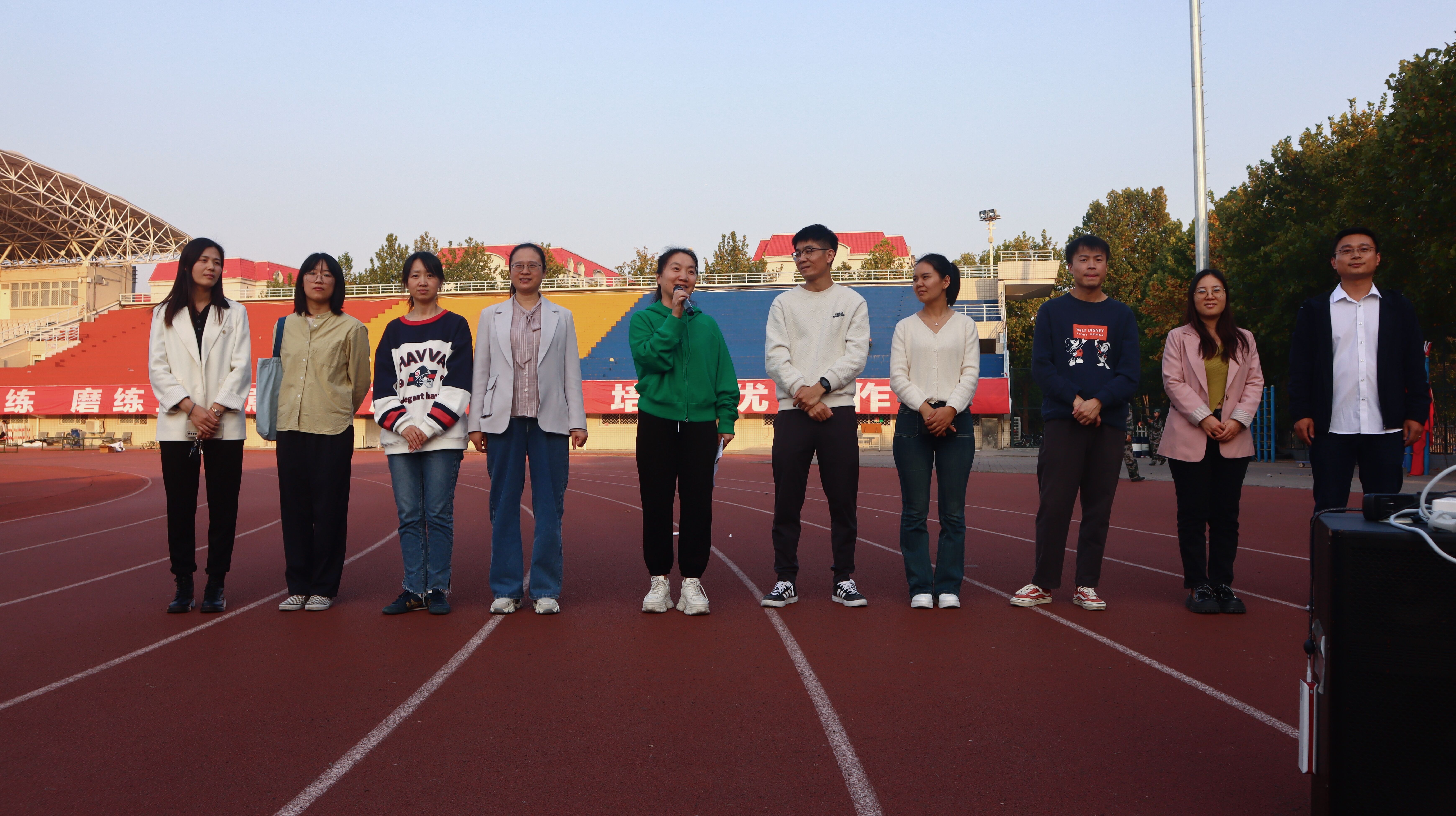 在莲花街校区田径场举行慰问2022级军训教官及参训学员相关活动。正处级组织员鲍庆丹、院团委书记刘磊、学工办副主任崔莉莎和全体辅导员参加慰问活动。