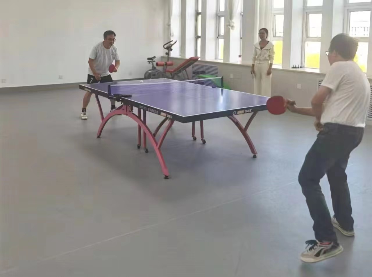 在学院乒乓球室6503举办教职工乒乓球友谊赛。