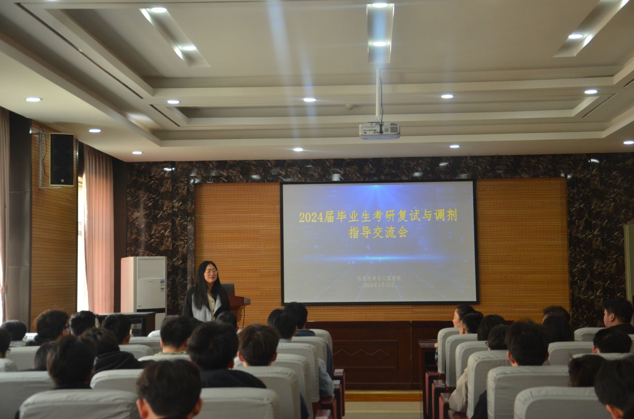 在6228会议室举办了2024届毕业生考研复试与调剂交流会。会议邀请学院学科办主任朱春华、电信系教师吕宗旺作为主讲嘉宾,毕业班辅导员和考研学生参会,学工办副主任崔莉莎主持会议。