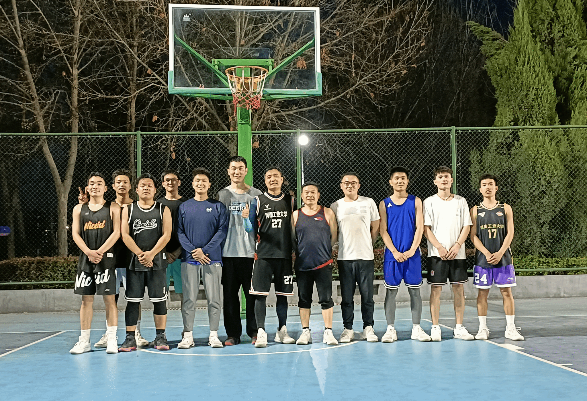 教职工篮球队和研究生篮球队在学校西塑胶篮球场举行了一场师生友谊赛。