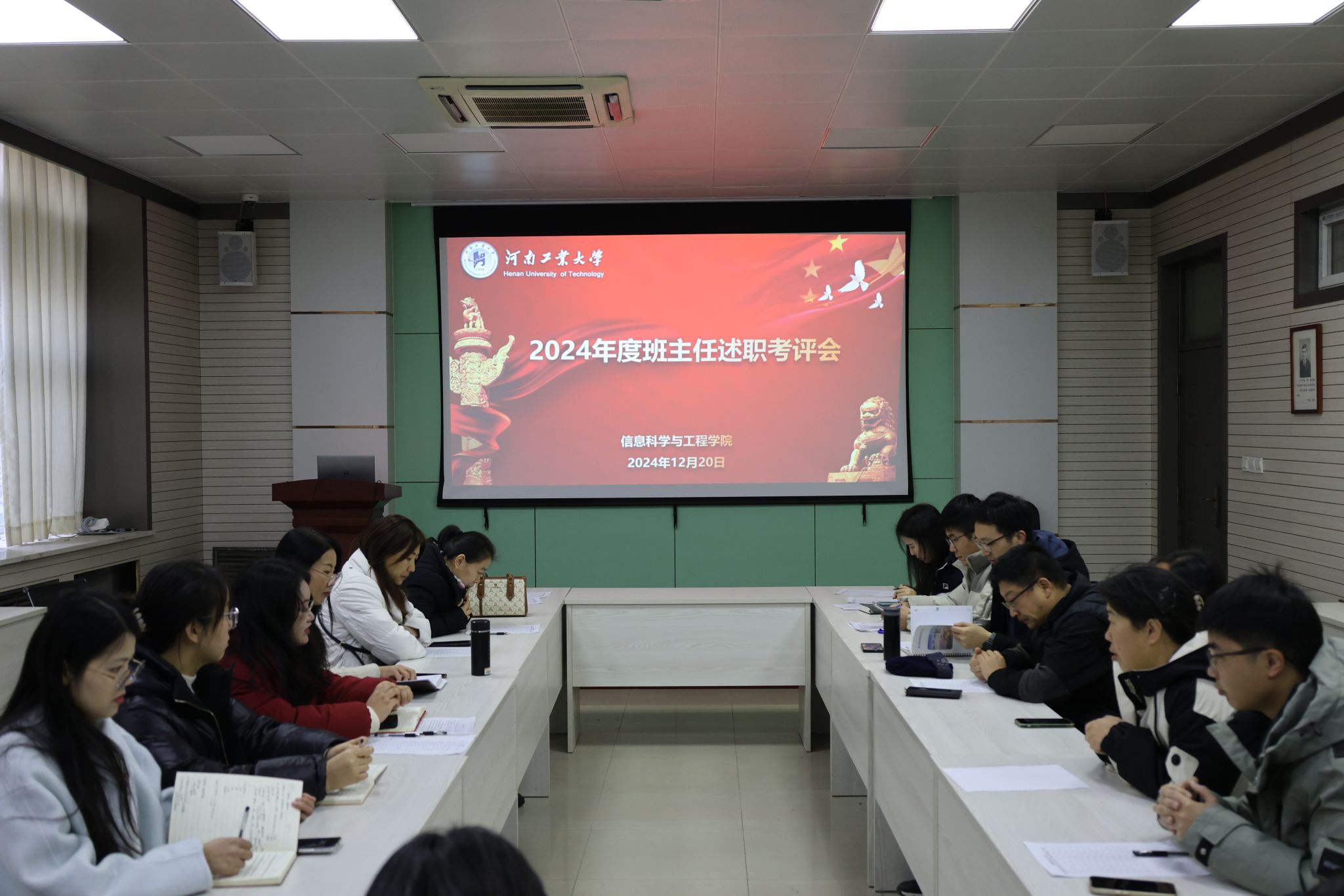 在惟新楼学术报告厅成功举办了2024年度班主任年终述职交流大会。学院党委副书记魏雪芹,全体班主任以及辅导员参加了会议。会议由学工办主任崔莉莎主持。