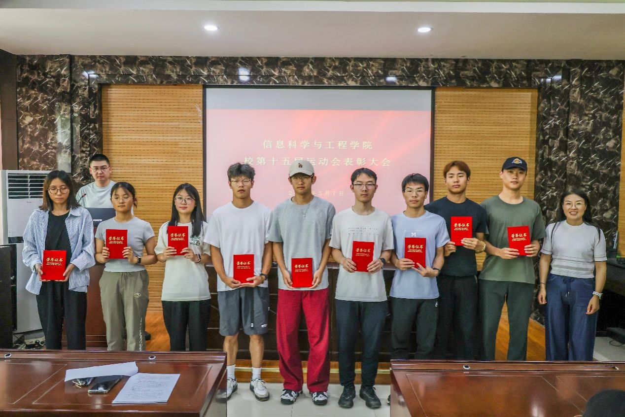 关于校第十五届田径运动会的表彰决定》。随后,在热烈的掌声中,与会领导及老师为获奖学生代表依次颁发了荣誉证书,并与他们亲切合影留念。功勋运动员魏石磊上台发言,他以自身经历激励同学们不畏挑战、突破极限,将体育精神融入学习和生活中。优秀组织者代表张子坤在发言中分享了幕后统筹工作的经验,强调团队协作的重要性,并表达了对学院和老师的感激之情,鼓励同学们积极参与体育锻炼,为学院争光。
