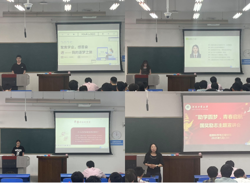 宣讲会上,22级计科专业国家励志奖学金获得者胡焮铭从学习方法、目标管理和心理健康等方面结合自身真实经历,分享了自己独特的见解;21级计科专业国家奖学金获得者陈欣鼓励同学们积极参与“挑战杯”、中国国际大学生创新大赛等各类竞赛,在比赛中积累经验和方法;21级电信专业国家奖学金获得者段向阳分享了自己的保研经验和方法,希望同学们可以早做规划和准备。