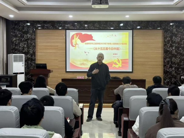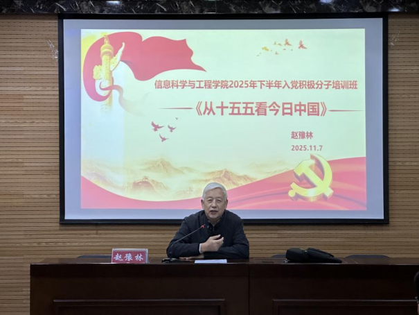 原副校长、校关工委主任赵豫林以《从十五五看今日中国》为题,为学校新入党积极分子讲授专题党课,以深厚阅历与专业视角,深入浅出引导青年读懂中国、认同制度、勇担使命。