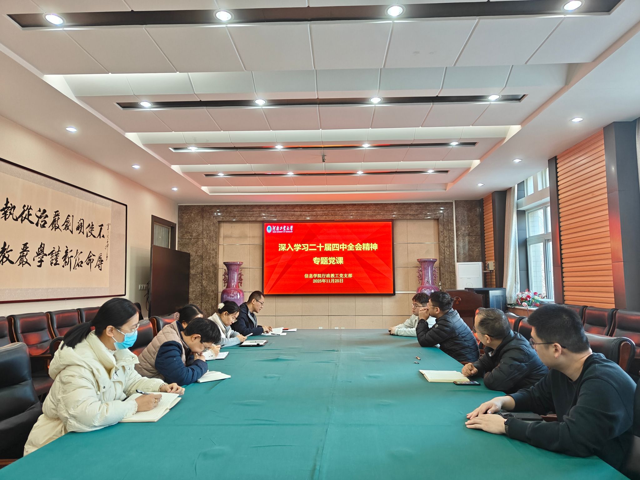 行政教工党支部在6225会议室举行“深入学习党的二十届四中全会精神专题党课”学习活动。本次党课以“紧跟时代浪潮,聚焦AI赋能”为核心主题,由支部书记吕宗旺主讲,全体行政人员及支部党员参加学习。活动通过专题授课、案例解析、交流研讨等环节,深入解读全会精神中关于人工智能发展的重要论述,切实推动理论学习与行政工作实践深度融合。