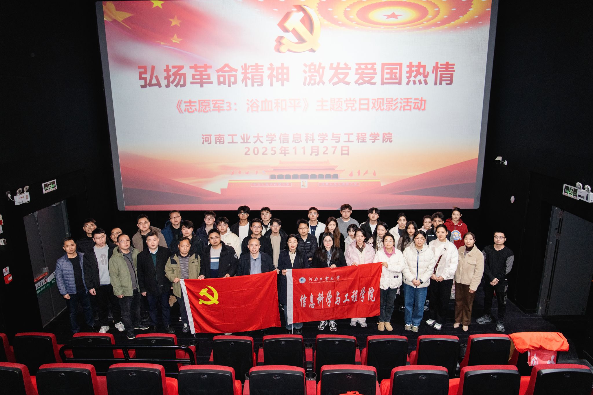 组织师生开展《志愿军3:浴血和平》主题党日观影活动。影片以抗美援朝战争为背景,通过震撼的战争场面与细腻的人物刻画,生动展现了志愿军战士们保家卫国、不畏牺牲的崇高精神。活动旨在通过光影艺术激发师生的爱国热情,凝聚团队力量,同时丰富校园文化生活。