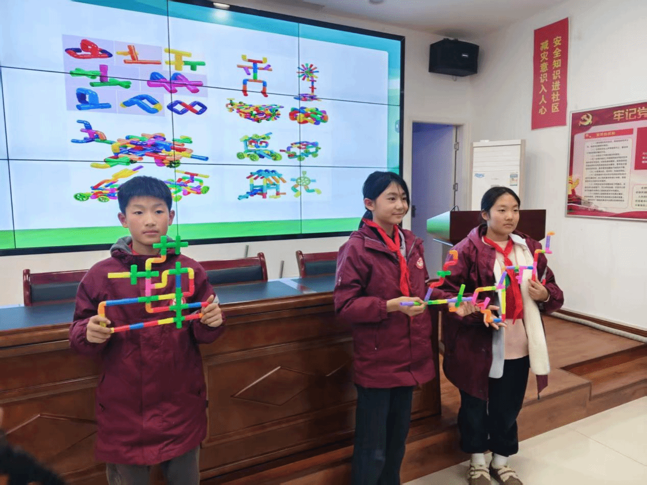 搭建过程中,孩子们不仅运用所学知识,更锻炼了团队协作与解决问题的能力。完成作品后,各小组代表踊跃上台展示成果,分享搭建心得。这种沉浸式的体验,让孩子们从书本知识走向了动手实践,切身感受到了工程建设的严谨与魅力。
