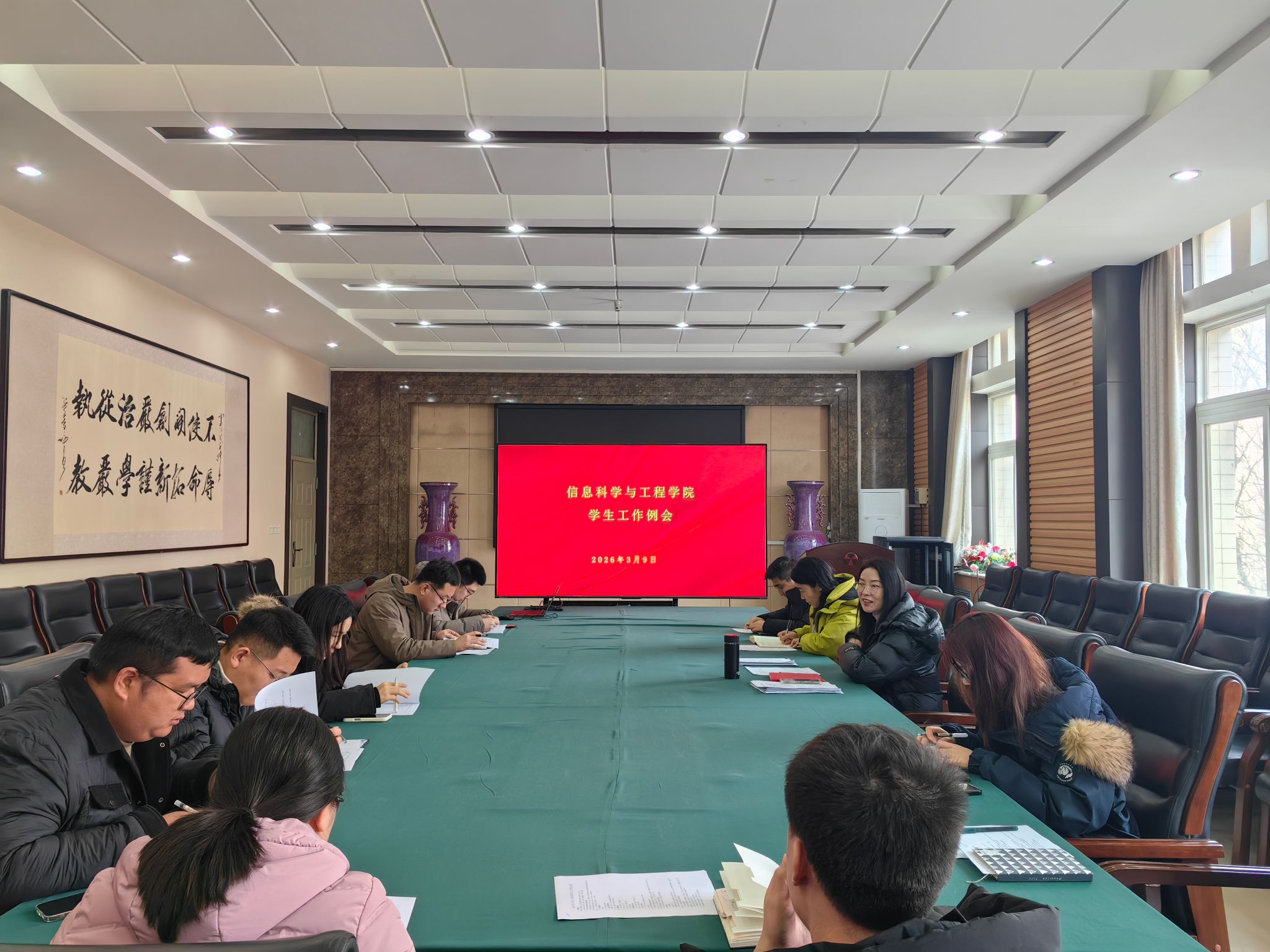 会上传达了学校学生工作会议精神,对学生工作进行专题部署,逐项梳理工作任务、明确落实安排。崔莉莎全面梳理了新学期在宗教渗透防范、校园反诈、校庆筹备、就业推进、思政铸魂、安全稳定等方面的核心任务,清晰总结了当前工作的重点方向与潜在风险点,并对重点关注学生群体、外宿生管理、学业预警等关键环节进行了标记,为下一步精准推进工作指明了方向。