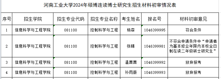 2024年硕博连读博士研究生招生材料初审情况公示