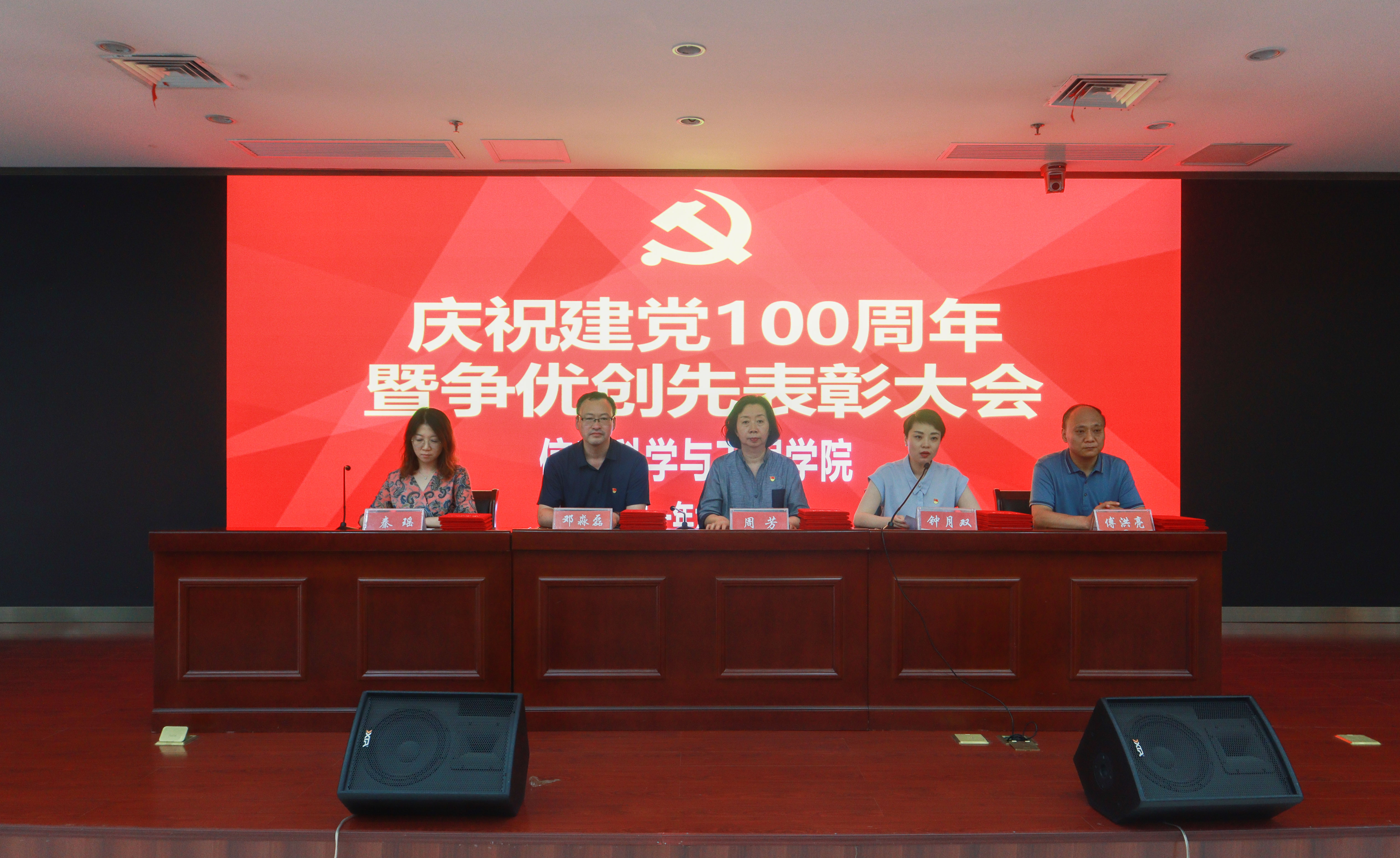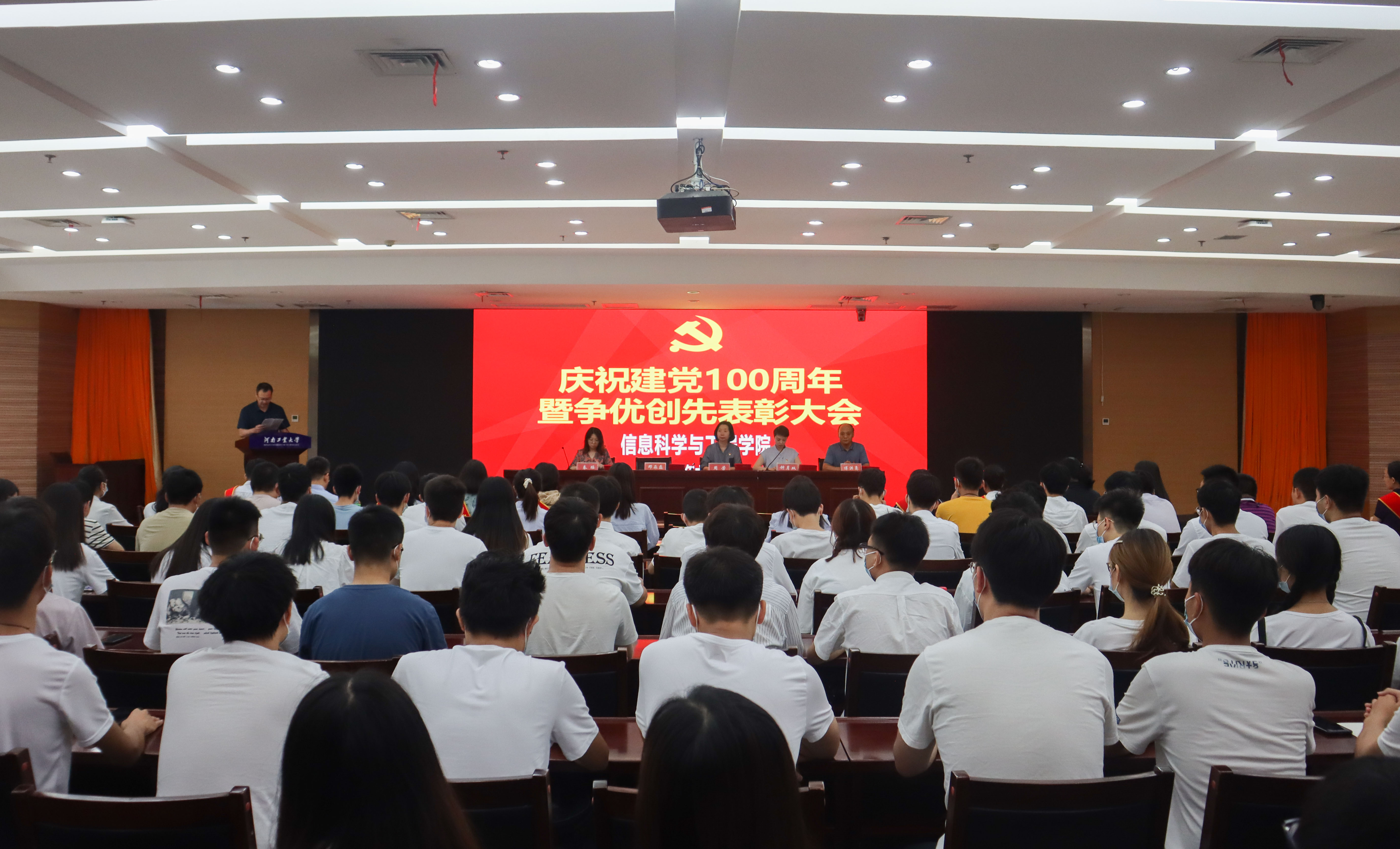 在D205会议室隆重召开庆祝建党100周年暨“创先争优”表彰大会。院党委书记周芳、院长邓淼磊、党委副书记钟月双,副院长傅洪亮、秦瑶,院党政办、全体辅导员及200余名师生党员参加了会议。会议由钟月双主持。