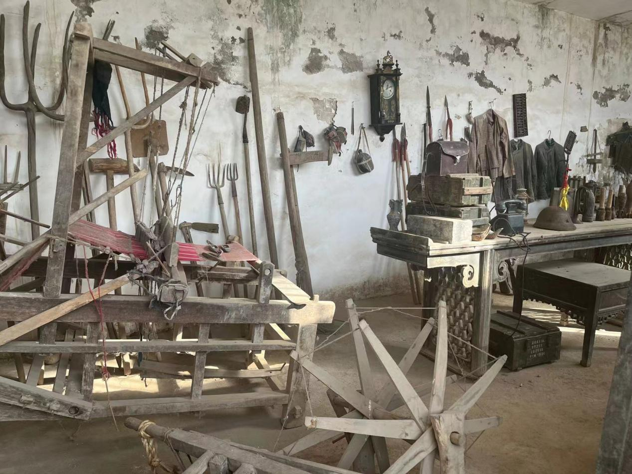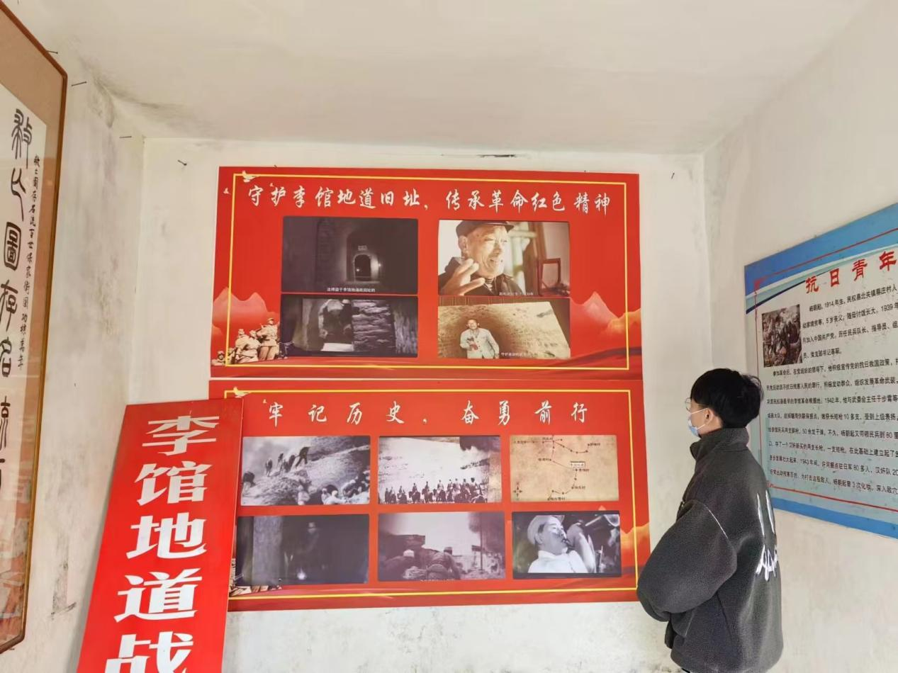 来到“李馆地道旧址”,首先看到的是平常家的农家大院,在大院一旁,摆放着旧时百姓劳作时用到的工具,还有他们日常用的衣服。在另一侧的房间中,陈列着战时所用的武器和炮弹。不仅如此,还可以看到他们当时的电话和在墙上挂的算盘和时钟。我们的先烈就是在这个环境下生活的,他们必须要保护人民的安全,这让我们何尝不感到心酸呢,我们追寻红色基因不就是为了让我们有更好的爱国习惯。