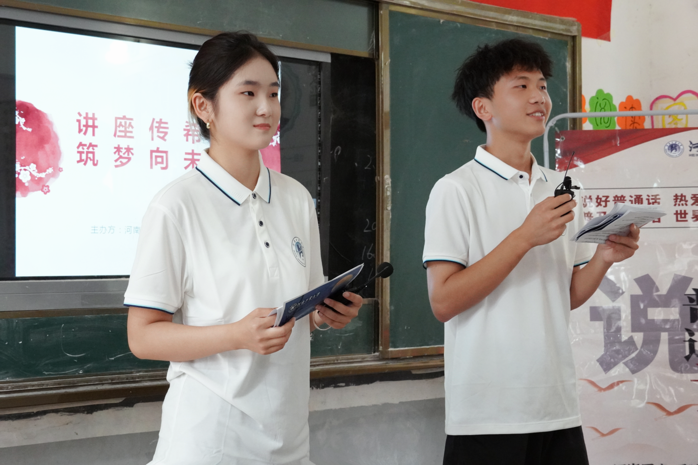 宣讲活动开始前,团队成员首先整理并布置好了宣讲场地,摆好桌椅、张贴宣传标语和横幅等。