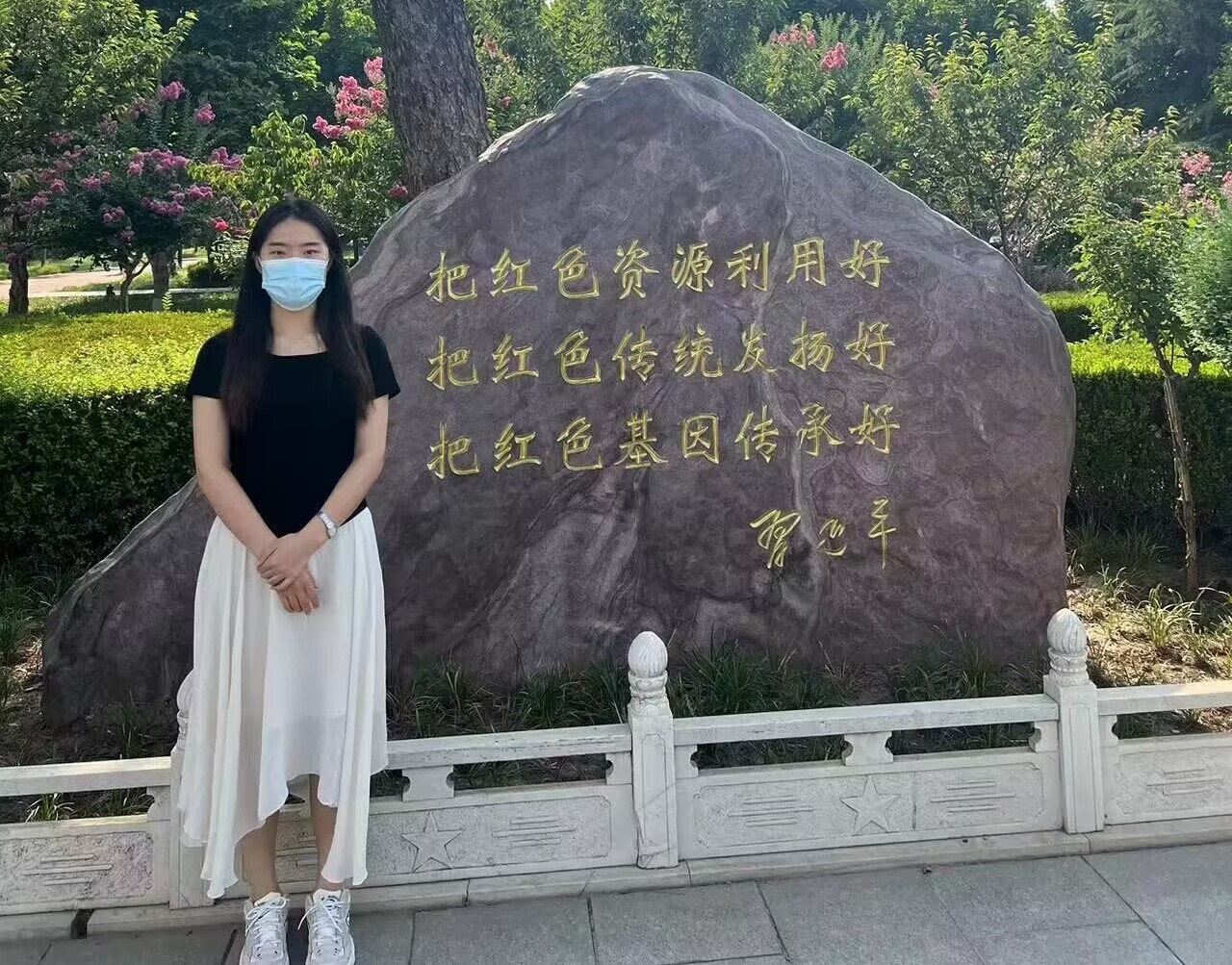 在烈士陵园中巍然屹立着中共中央总书记、国家主席、中央军委主席习近平作出的重大指示:红色资源利用好,红色传统发扬好,红色基因传承好。