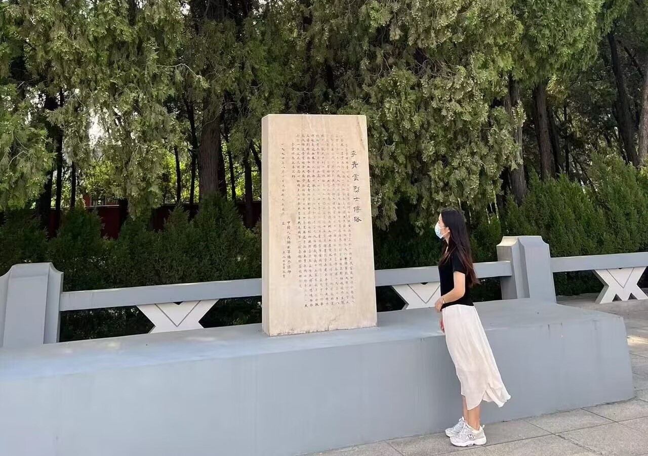 随后,队员李晓雨到达了晋冀鲁豫革命纪念园。从大门直走映入眼帘的便是李青云烈士纪念碑。1994年,其骨灰迁入到晋冀鲁豫烈士陵园安葬。世人称其为:一位红军将领抱病指挥部队作战,带着未酬的壮志与世长辞。