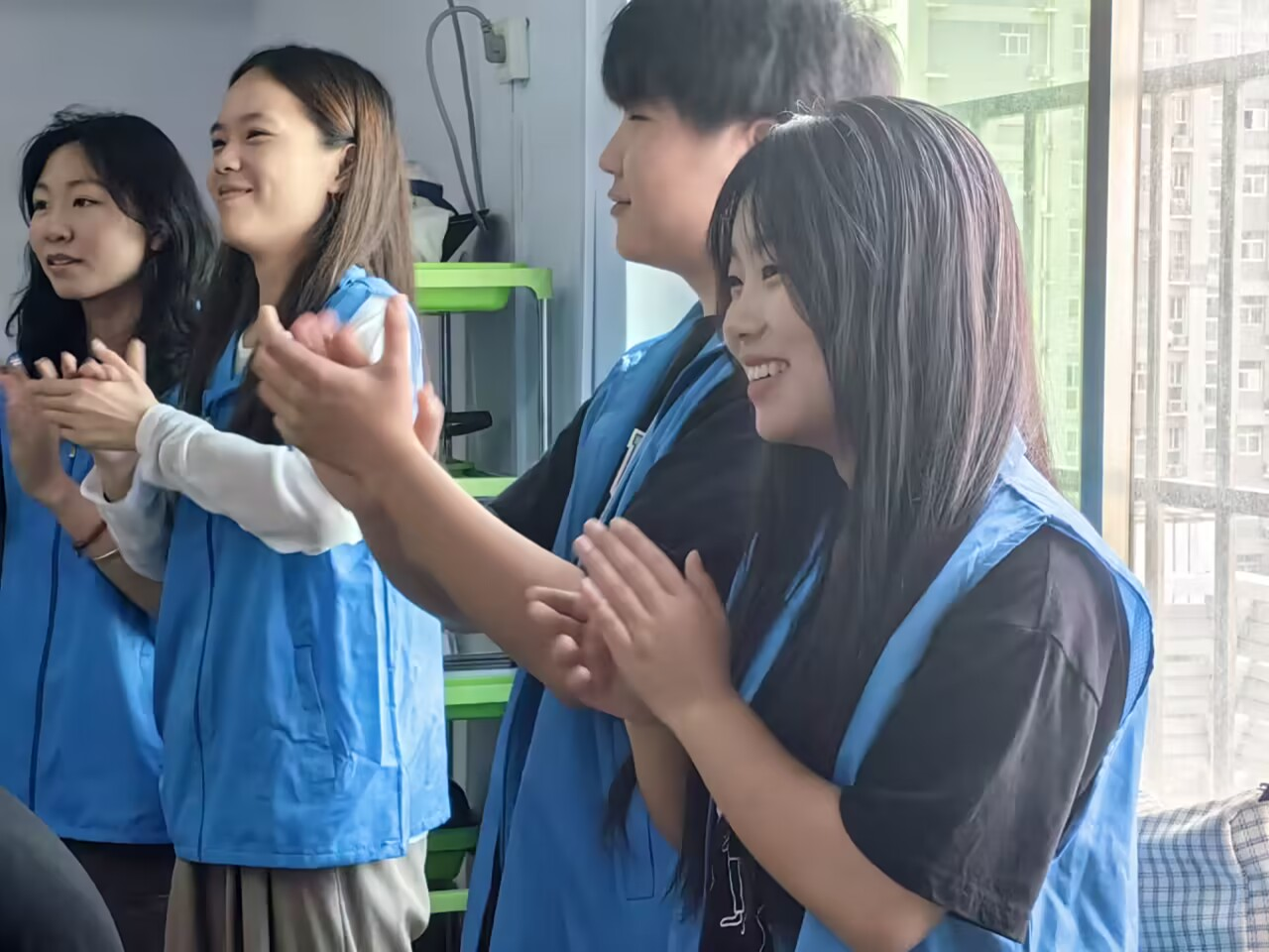 在这次活动的最后,志愿者和孩子们一同展示了完成的作品,每个孩子都富有创造力,活动圆满完成,实践团队的成员拿出院旗与孩子们合照。