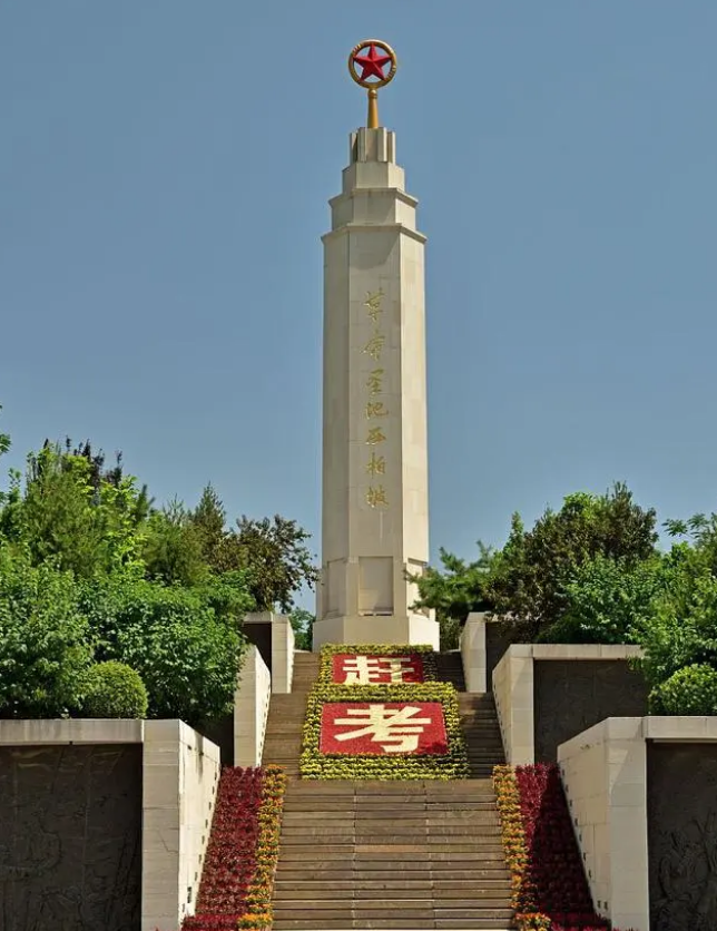 西柏坡纪念碑是西柏坡景区内的一个标志性建筑,是为了纪念中国革命胜利70周年而建的。纪念碑高耸入云,造型庄重,寓意着中国共产党领导下的革命历程和取得的伟大成就。