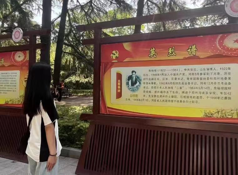 青春奋进队的成员们达到郑州市碧沙岗公园。成员们怀着无比激动的心情走进碧沙岗公园的大门,迫不及待地想感受着那份“碧血丹心”的铮铮誓言,并开展“学习红色精神,缅怀英雄先烈”实践活动。