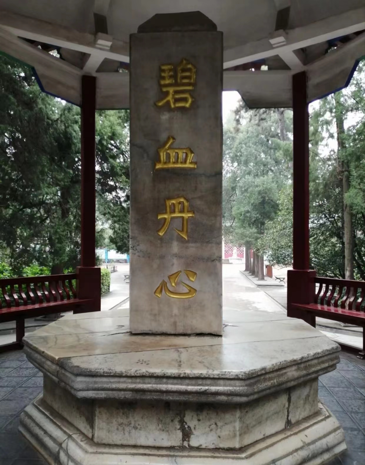 1928年春,冯玉祥为纪念北伐国民革命军第二集团军阵亡将士,投入了20万元巨资,并委托交通司令许骧云建造北伐阵亡将士墓地。在陵园内还修建了纪念亭,亭中央耸立着一块汉白玉石碑,镌刻着“碧血丹心”四个大字,亦为冯玉祥亲笔所书,背面刻有他所撰写的《阵亡烈士纪念碑碑文》。