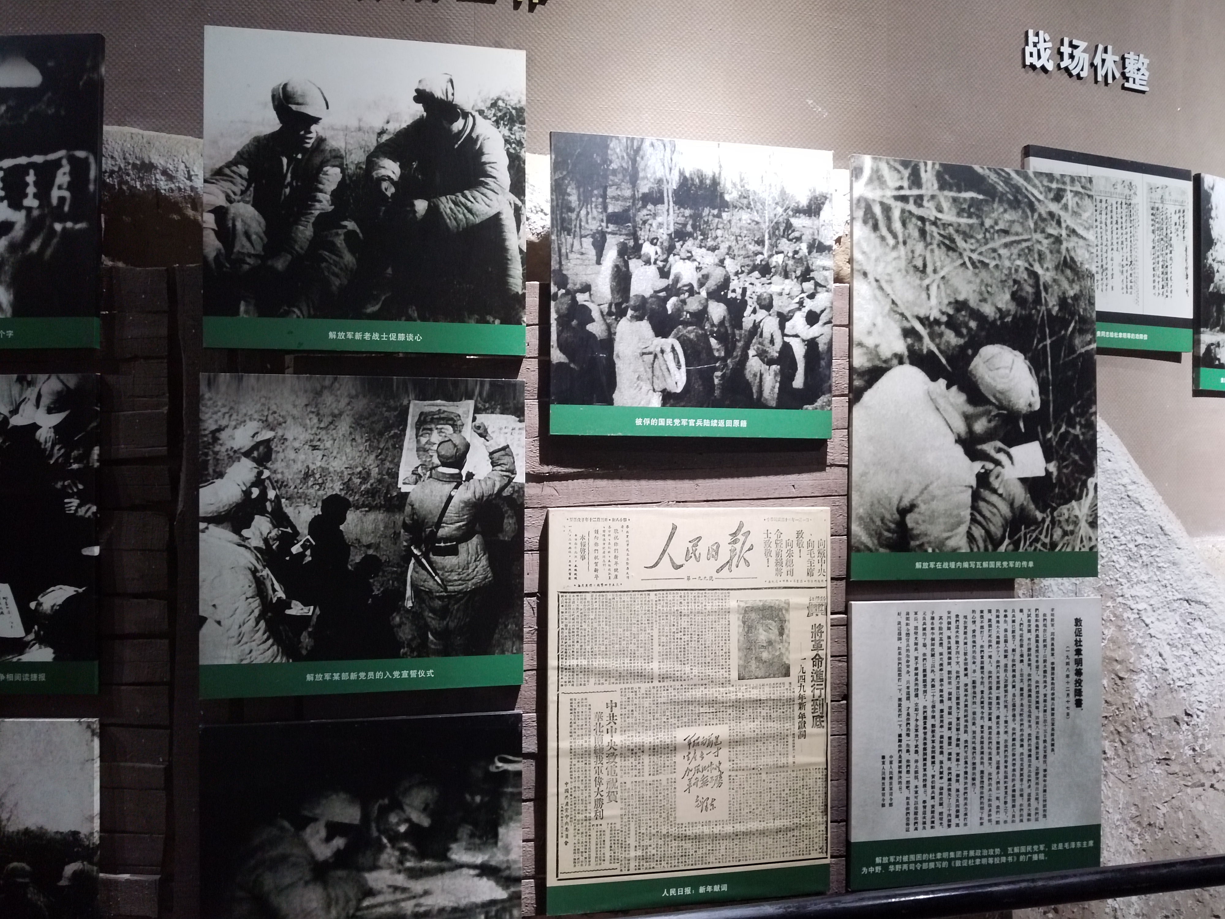 队员们看着墙上挂的一幅幅真实的战争画面,一组组文字介绍,心中久久不能平静。尤其是这组战役记录照片,从中能切身体会到先烈战争环境之艰难,生活条件之艰苦,支撑他们在如此恶劣环境下依然能够挺起身躯与敌人抗争的,是先烈们心中坚定不移的爱国主义精神!