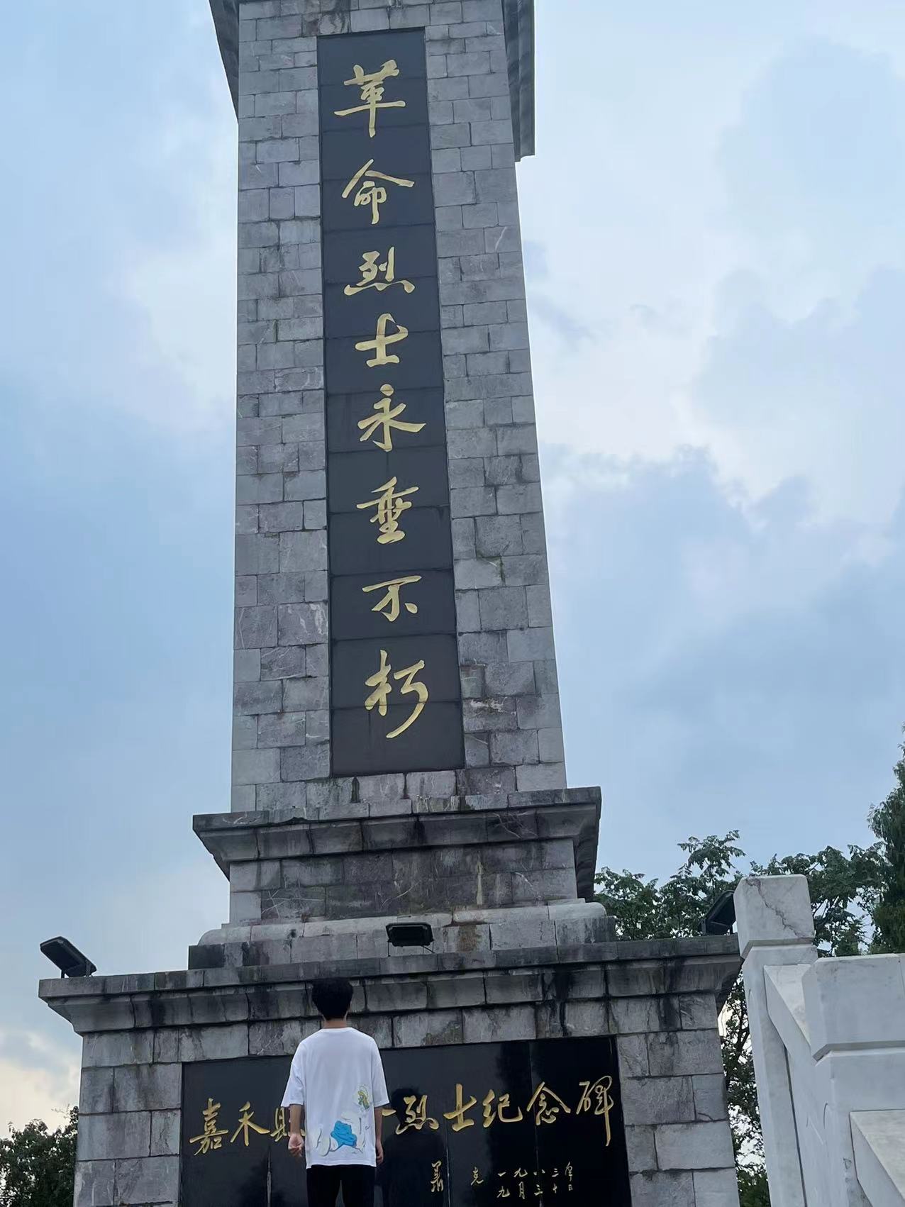 “星星之火,可以燎原”实践团队来到湖南省郴州市嘉禾县的丙穴烈士陵园参观革命烈士纪念碑。