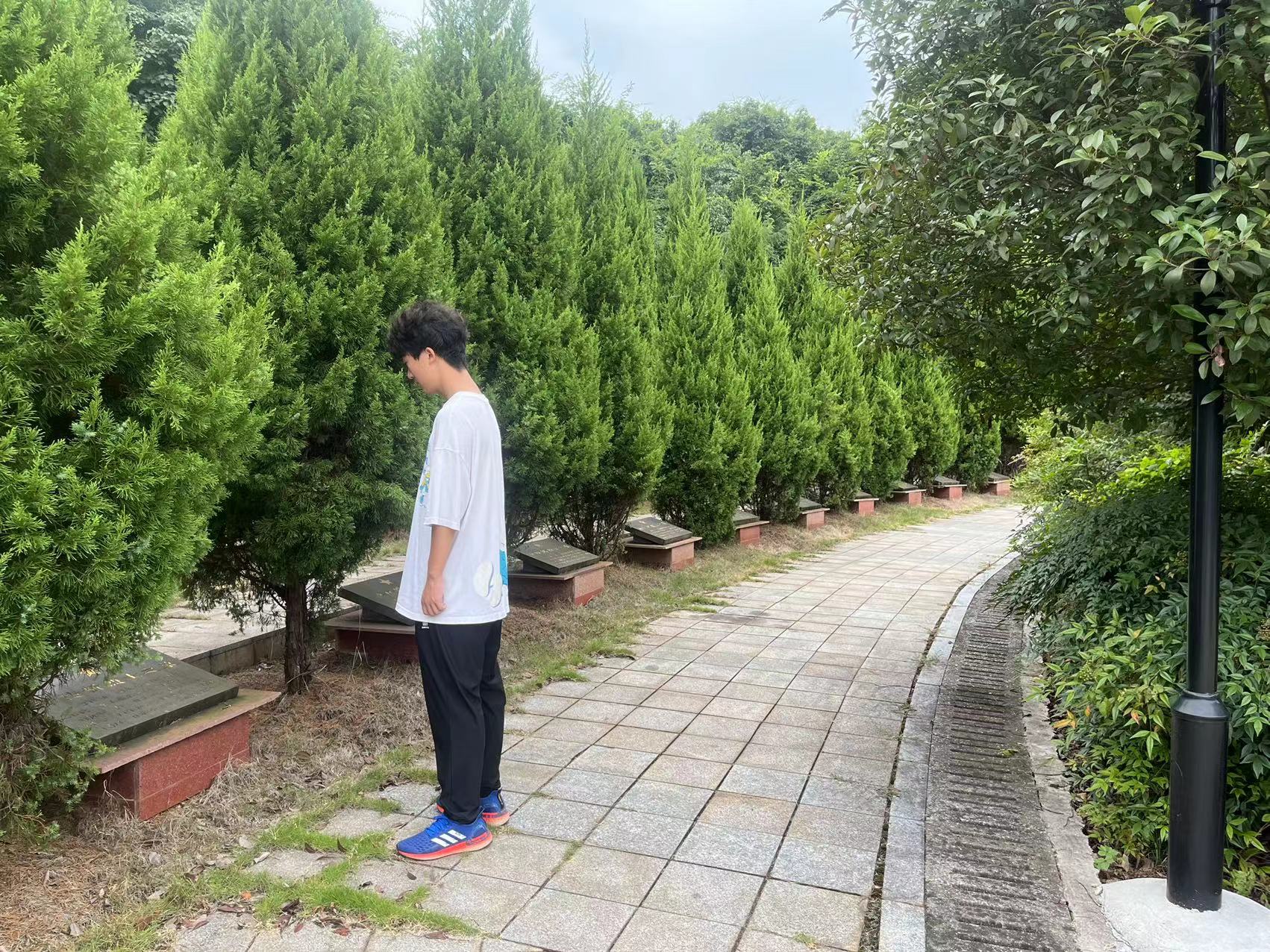 图三 团队成员唐兴瞻仰陵园内烈士之墓