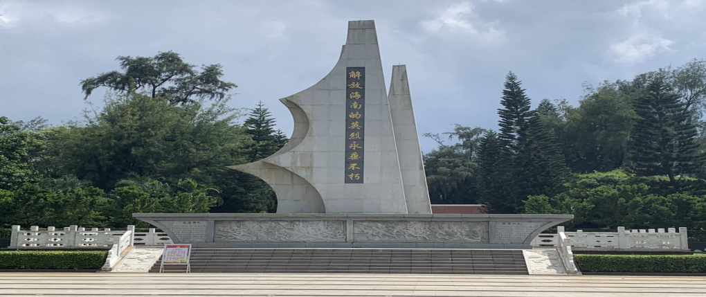 “传承红色基因,践行初心使命”的社会实践团队正式踏进解放海南岛战役烈士陵园,为纪念在解放海南岛渡海作战中英勇牺牲的烈士,1957年海南行政公署在海口市金牛岭兴建“金牛岭革命烈士陵园”。为了凸显解放海南岛战役的纪念意义,2007年1月,省政府批准将“金牛岭革命烈士陵园”更名为“解放海南岛战役烈士陵园”,并向国务院申报列入全国重点烈士纪念建筑物保护单位