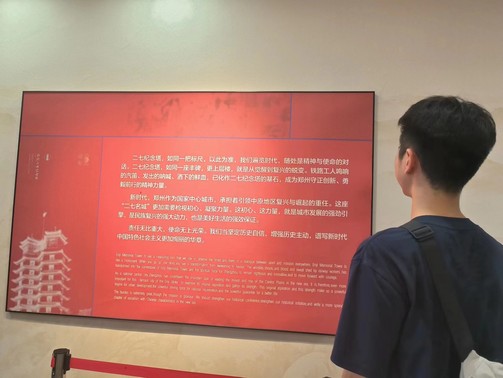 在这一层了解到了二七塔建造的背景以及所表达的意义,二七纪念塔全称是:郑州二七大罢工纪念塔,它是为了纪念发生于1923年2月7日的二七大罢工而修建。也讲到了这背后的故事:1923年2月1日,京汉铁路各站工人在郑州普乐园(今二七纪念塔),成立京汉铁路总工会。由于遭到封建军阀的阻挠和破坏,大会决定在2月4日举行全线总罢工。2月7日军阀吴佩孚、萧耀南在帝国主义的指使下,对郑州、江岸、长辛店的罢工工人进行了残酷镇压。全线工人同仇敌忾,不怕牺牲,同反对派进行了英勇顽强的斗争。在这场斗争中,共产党员、工人领袖林祥谦、施洋以及高斌等40多人被杀,300多人负伤,激起了全国工人大罢工的革命怒潮。这就是有名的“二七大罢工”。
