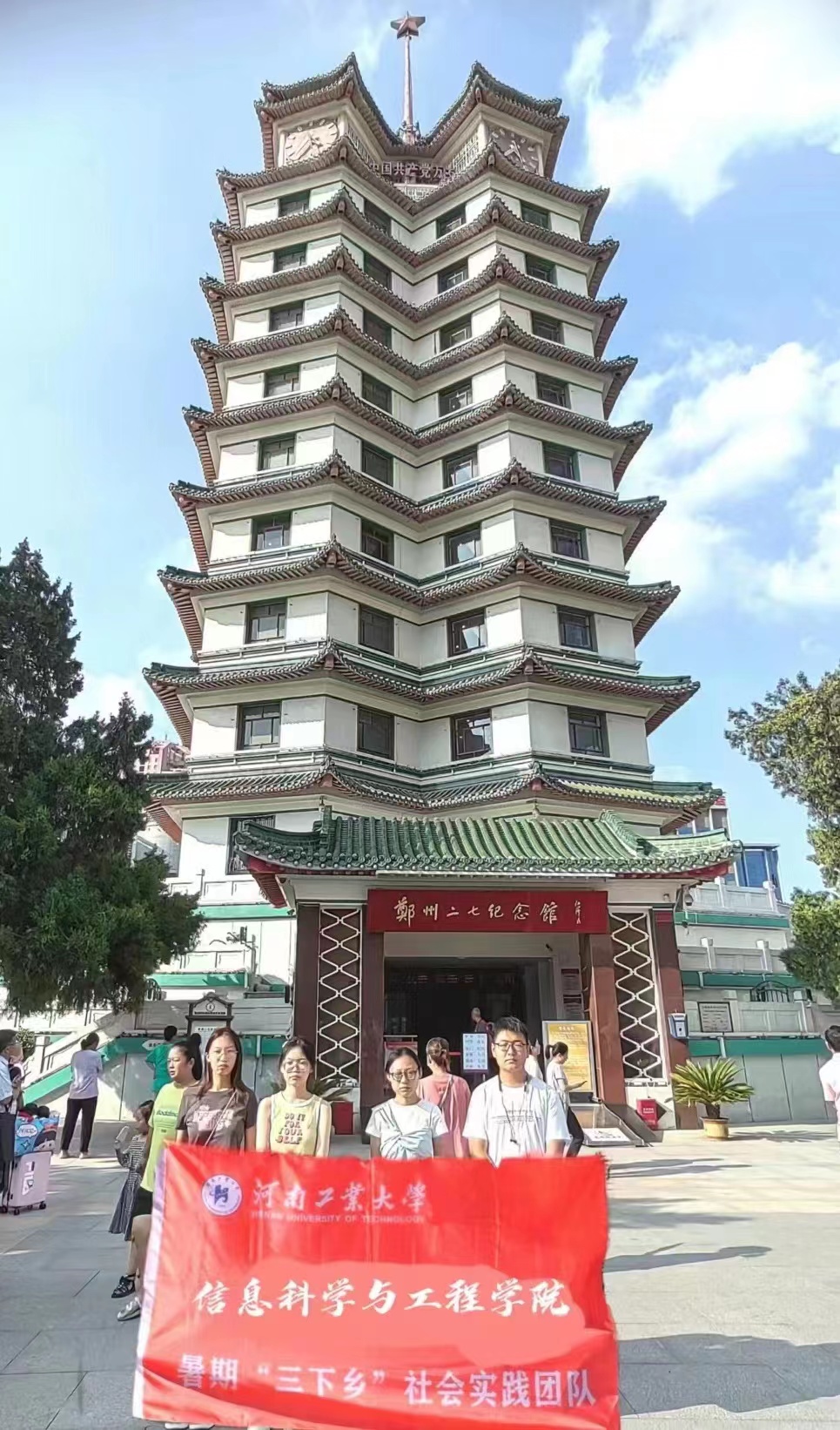 信息科学与技术学院“信院红领巾”实践六人小组于2023年8月29日上午九点三十分出发前往二七纪念塔进行参观历史遗迹,学习铁路精神,传播红色文化。从晨光熹微到烈日当空,从粼粼莲湖到辉辉二七塔,实践小队充分践行知行合一理念,真正做到学好二七历史,讲好铁路精神。