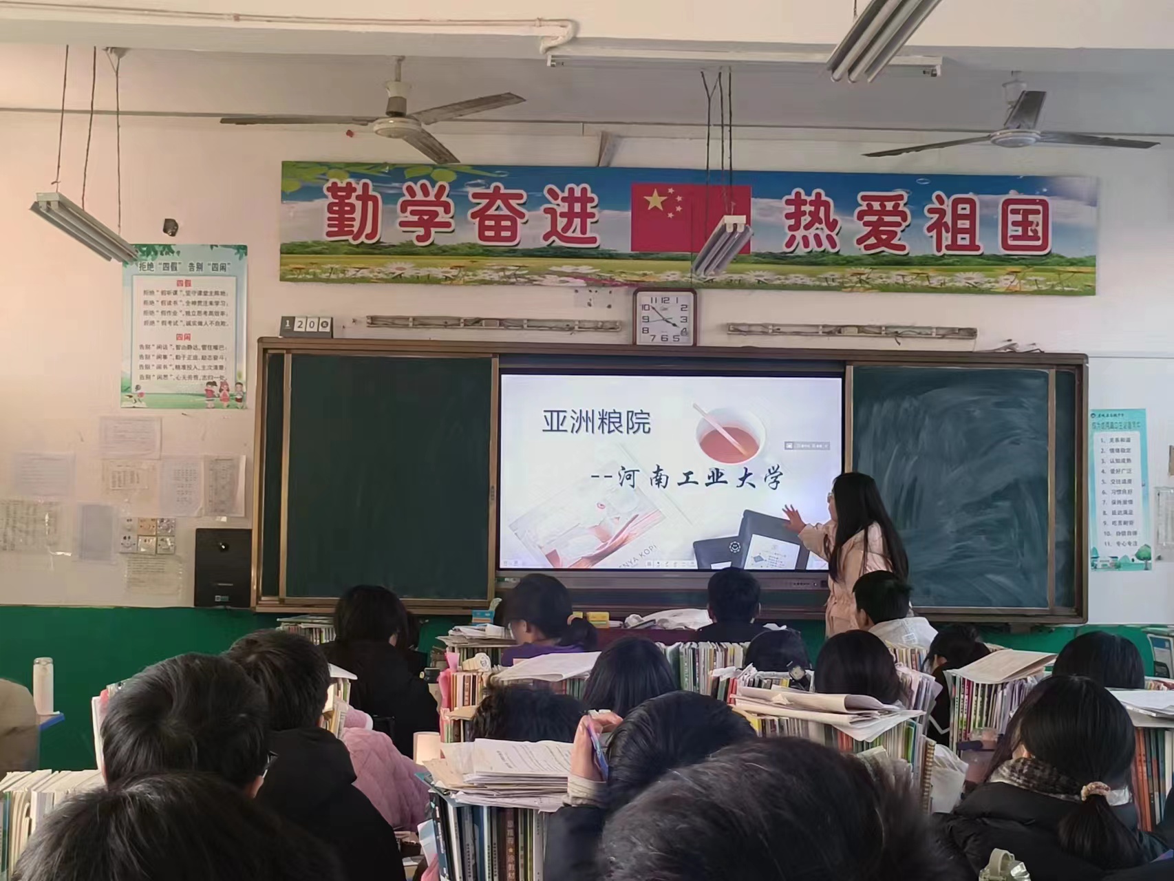 的宣讲资料后,“回校宣传之工大小分队”实践团队来到了虞城县高级中学。虞城县高级中学副校长杜老师及高三4班班主任邓老师对其表示热烈的欢迎。然后邓老师带领着实践团队来到了高三4班,向4班学子介绍了实践团队的成员并向他们说明了其目的。接下来,“回校宣传之工大小分队”实践团队成员向4班全体学生展示河工大的宣传视频并给他们分发宣传手册。
