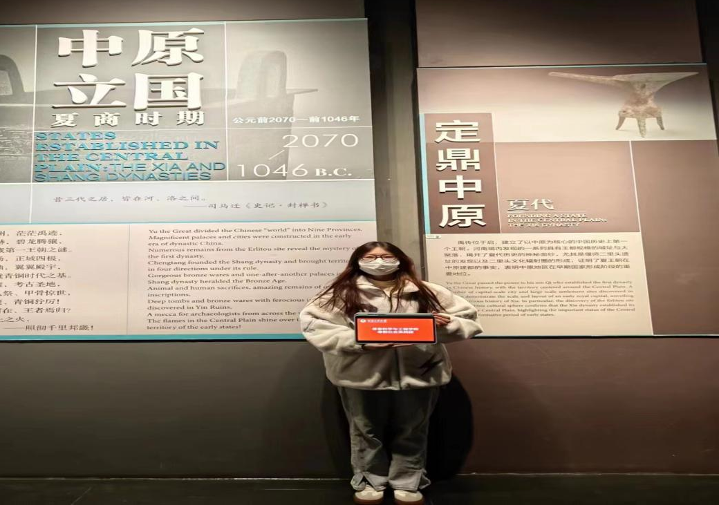 心手相连志愿者队的崔琪琪同学从1号展厅依次参观,随着讲解的深入,各类静止不动的器物好像渐渐有了生命,崔琪琪同学在被先人的智慧所折服的同时仿佛与古文化进行了一场跨越时空的交流,深刻体会到了中华文化的博大精深以及古代劳动人民的勤劳奋进,摆在其面前的早已不单单是一件件艺术品。