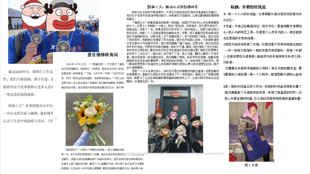 开展以“立德树人 情满工大”为主题的故事投稿活动,旨在通过文字的力量,唤醒大学生对亲情、爱情、友情以及学业与生活点滴的感知与珍惜。