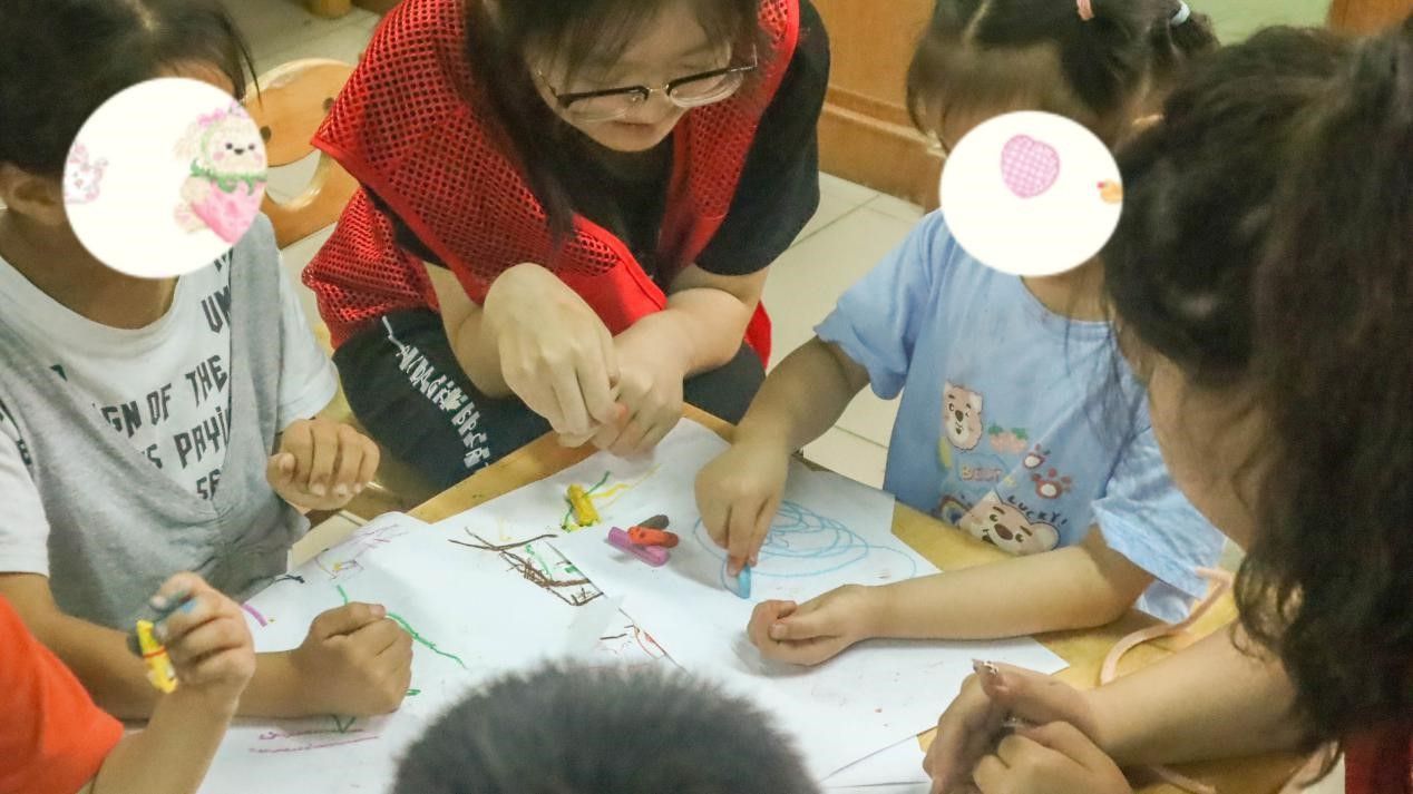 3号下午,队员们积极参与其中,与小朋友们一同互动,动手制作扭扭棒玩具,经历了一段温馨愉快的时光。在欢声笑语中,队员们不仅陪伴了孩子们的成长,也深刻感受到了关爱儿童心理健康的重要