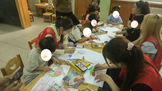 4号下午,队员们陪小朋友们一起画画,欢乐无限。