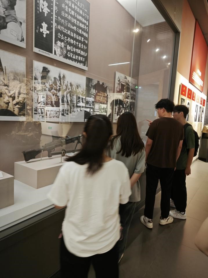 “革命烙印·红色印记”寻迹团团队出发前往河南省郑州市中原英烈纪念馆,并开始为期3天的祭奠革命先烈,参观、了解革命故事活动。7月2日中午10点58分寻迹团的队员们到达纪念馆并留下合照,如图1,并在管理员的指引下开始参观,馆内陈列了许多革命时期留存下来的物品以及革命场景的模拟,队员们对其进行了观摩与探讨,如图2、图3。7月2日下午5点30分,队员们参观完毕返回学校。在此次观摩中,队员们表示亲眼见证了先烈们所遗留的痕迹,感慨万千。