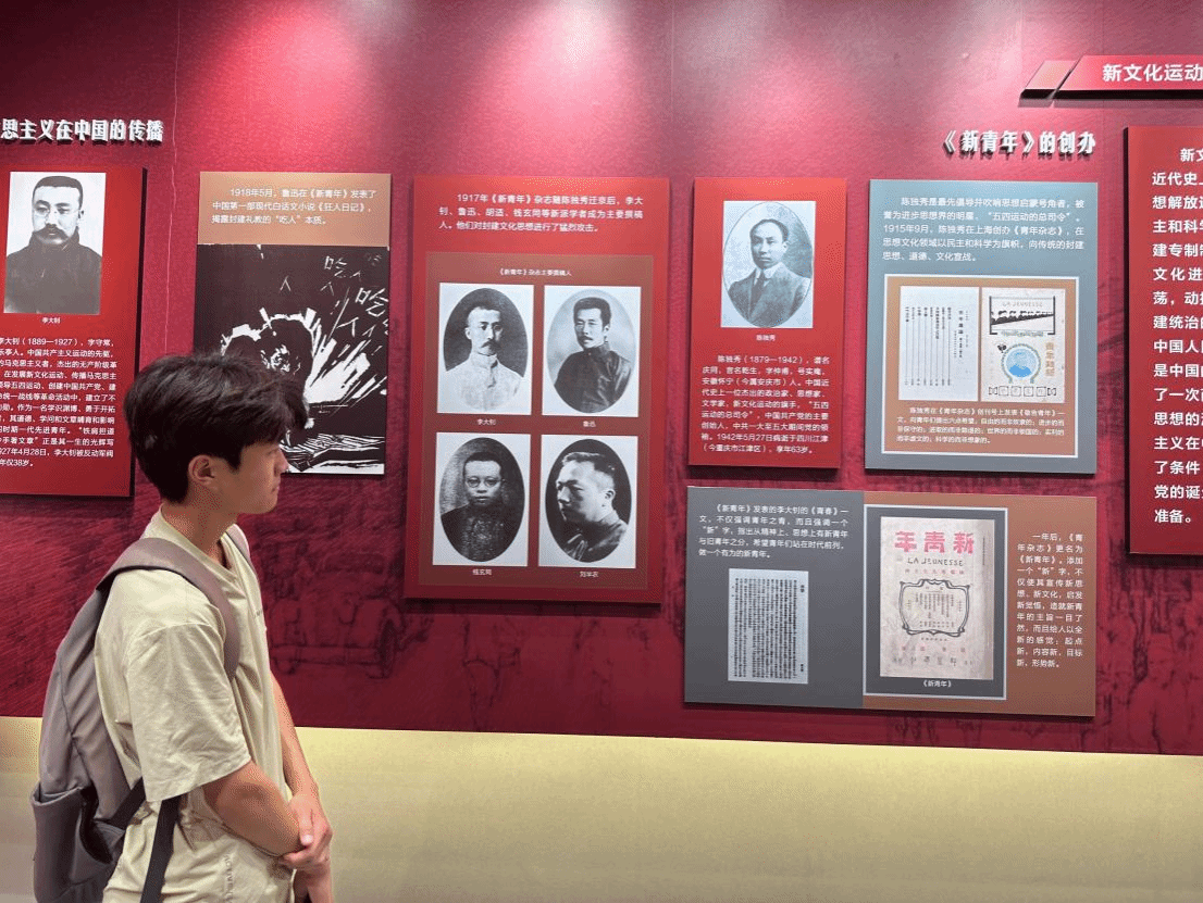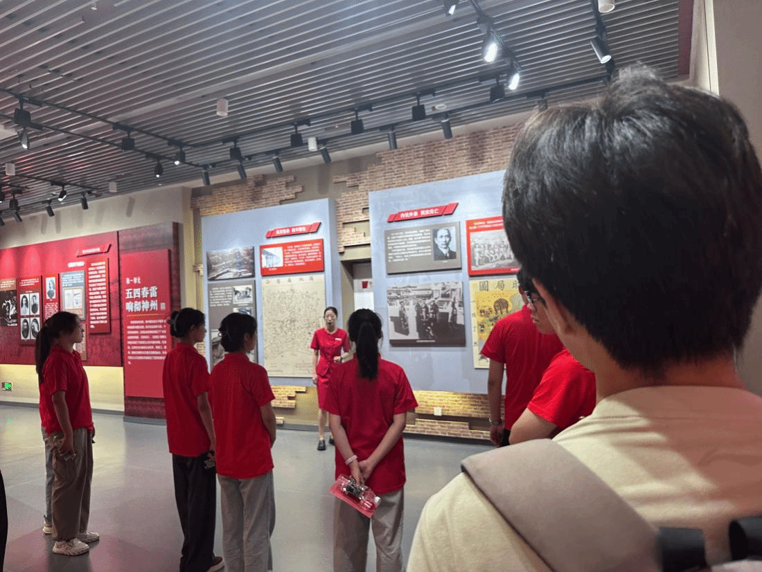 在进入纪念馆后,队员们在讲解员的带领下从五四运动的发展开始了解整段历史,在内忧外患民族危亡之际,一大批能人志士行动起来力求救国。