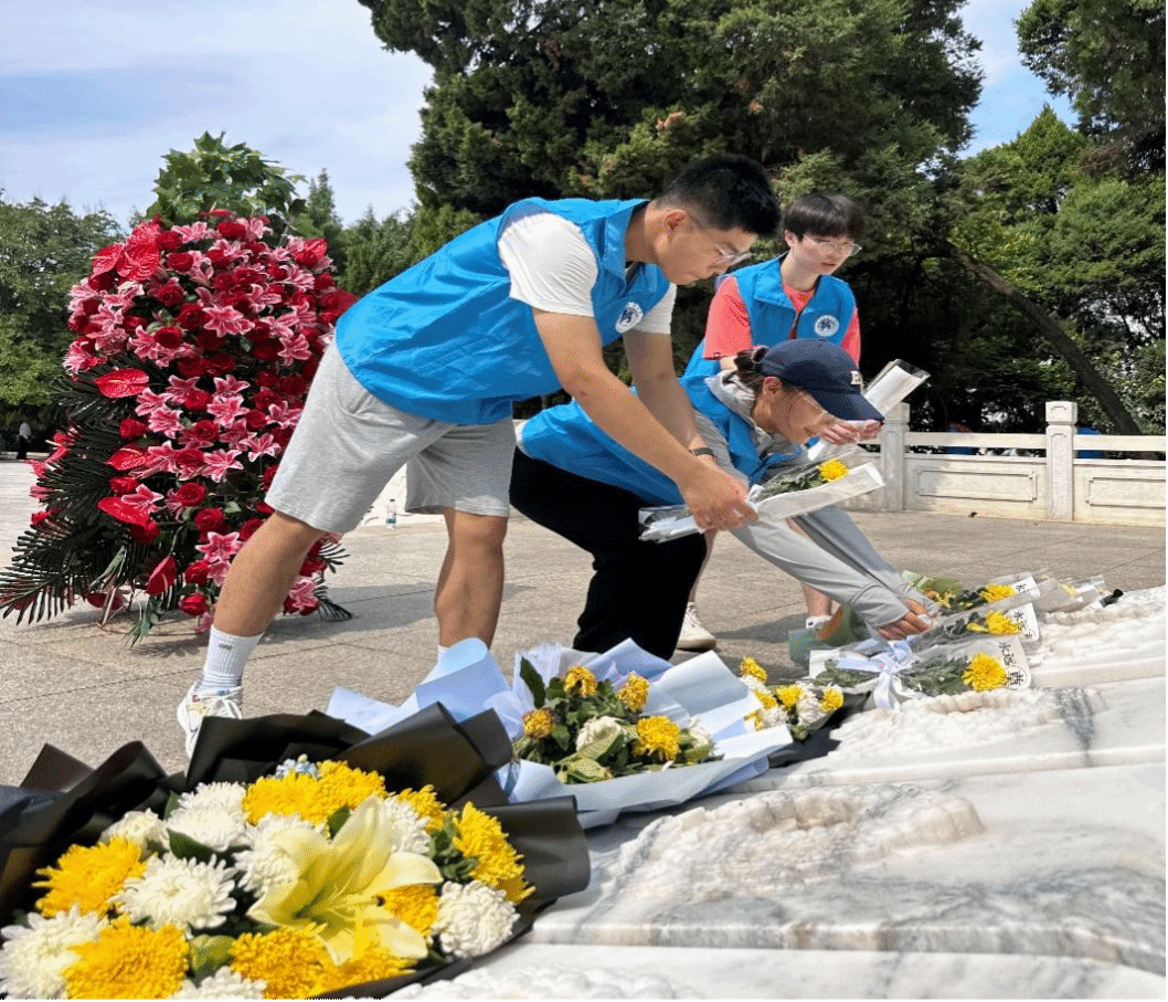 从纪念馆出来,实践团队前往了第一天实践的最后一个地点——焦裕禄烈士墓。在焦裕禄烈士墓前,团队成员们整齐列队,怀着崇敬之情,敬献菊花。菊花寄托着大家对这位人民英雄的深切缅怀和无尽敬意。深深地鞠躬,是对烈士的崇高礼赞,也是对自己的庄严承诺。