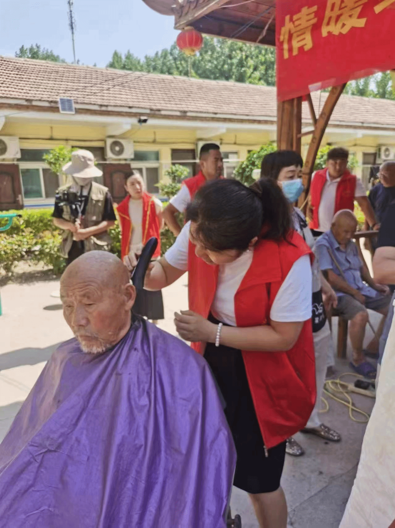 图2 团队成员帮助养老服务中心老人们理发