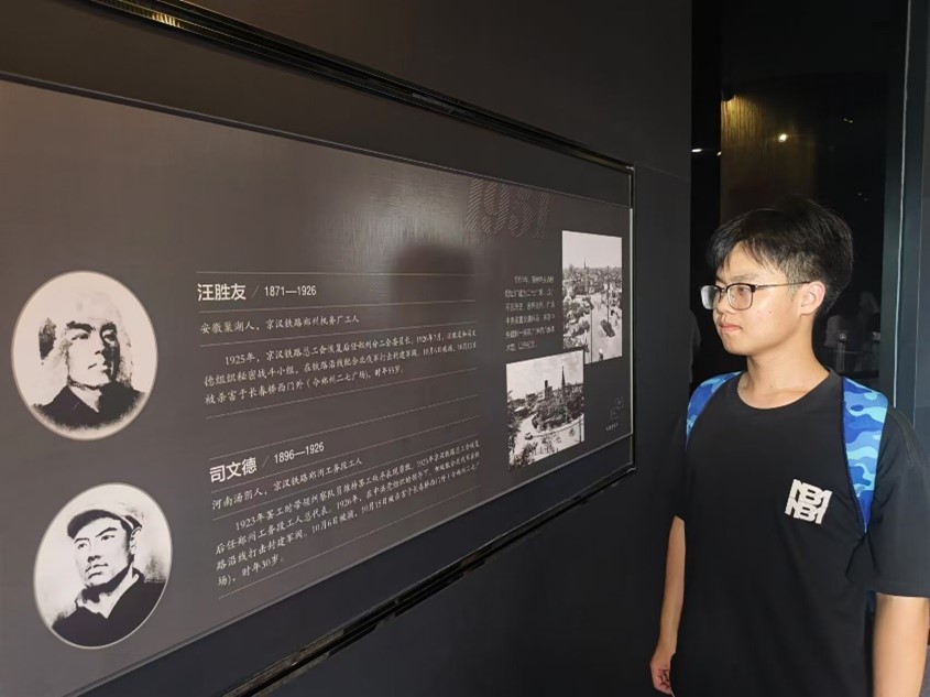 参观过程中,团队成员沿着塔内的展览廊道,逐层了解了京汉铁路大罢工的详细过程。展览中陈列了大量的历史照片、文献资料以及实物,真实再现了当年工人们在艰苦条件下进行斗争的场景。通过这些历史遗迹,成员们仿佛回到了那个风起云涌的年代,感受到工人们面对压迫时表现出的坚韧与不屈精神