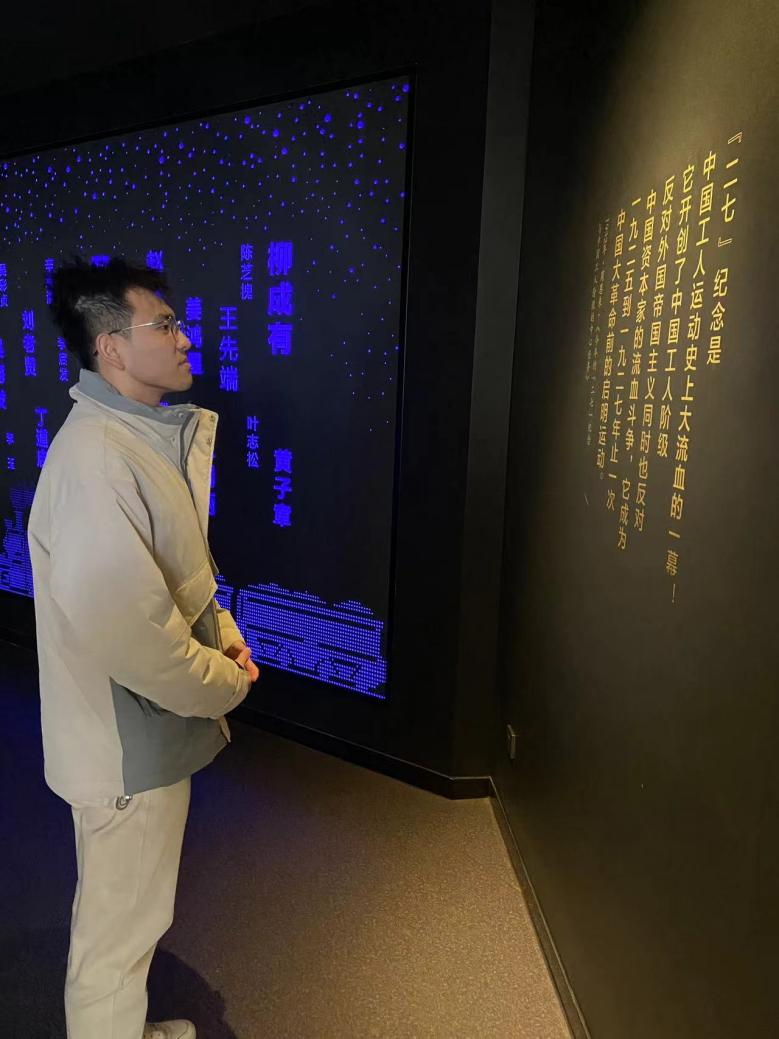 1月13日下午4时,成员生万宝同学在二七纪念塔三层展厅观看了关于京汉铁路工人大罢工的老电影《风暴》。影片真实再现了工人们在艰苦条件下为权益和尊严斗争的历史,以及烈士们面对镇压时的英勇和牺牲精神,深深打动了生万宝。