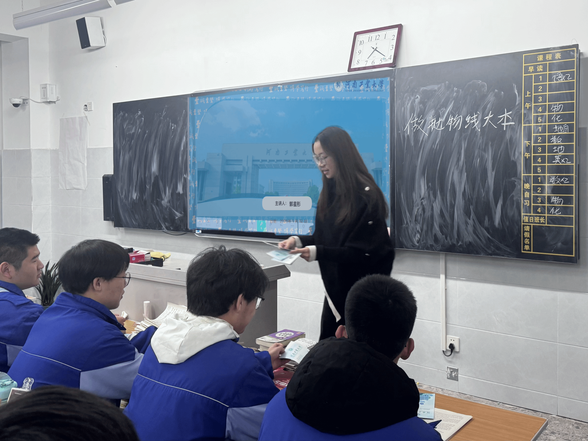 在孟津区第一高级中学315班和316班,郭星彤同学通过举办宣讲会,结合精美的PPT展示,生动地向大家介绍了学校的整体情况。从现代化的教学设施到优秀的师资队伍,从丰富多彩的社团活动到广阔的国际交流机会。