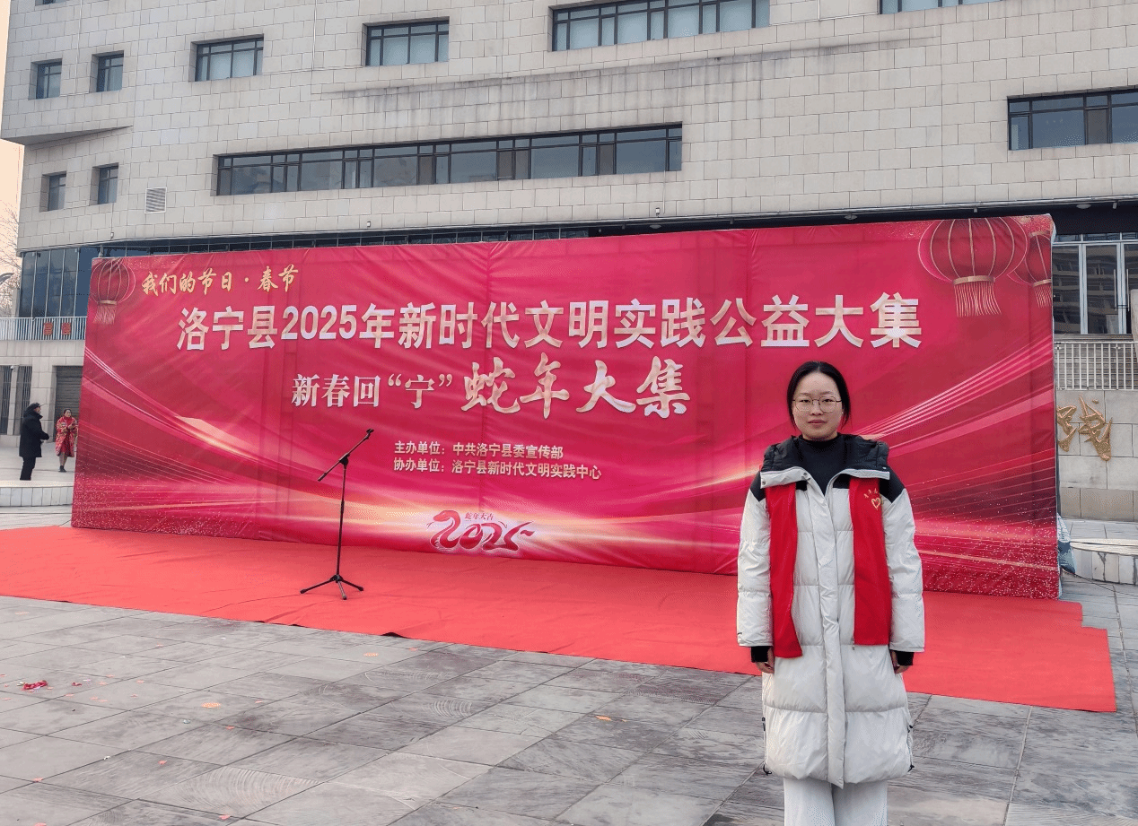 的24级邓雅文同学积极响应号召,参与家乡洛宁县2025新时代文明实践公益大集活动,以实际行动践行志愿服务精神。