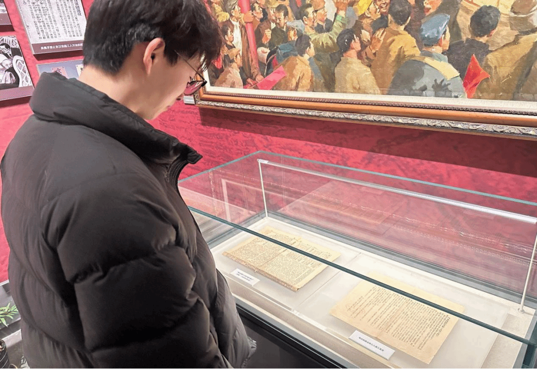 进入纪念堂,迎面而来的便是庄严肃穆的展厅。展厅内陈列着大量珍贵的文物、图片和展品,这些展品详细记录了二七大罢工的起因、经过和结果。通过讲解员的生动讲解,成员们了解到,当年工人们在极其艰苦的条件下,为争取基本的生存权利和政治权利,进行了英勇的斗争。展品中既有当年工人们使用过的工具、穿过的衣物,还有他们在斗争中使用的旗帜和标语,这些真实的物件仿佛将大家带回到了那个战火纷飞的年代。不同的文物排列在面前,不仅仅是革命的文物,更是革命人们的精神代表,革命精神深深打动人心,那勇往直前,不惧苦难的二七大罢工精神深深地感染了队员,队员内心不由地发出尊敬之情。