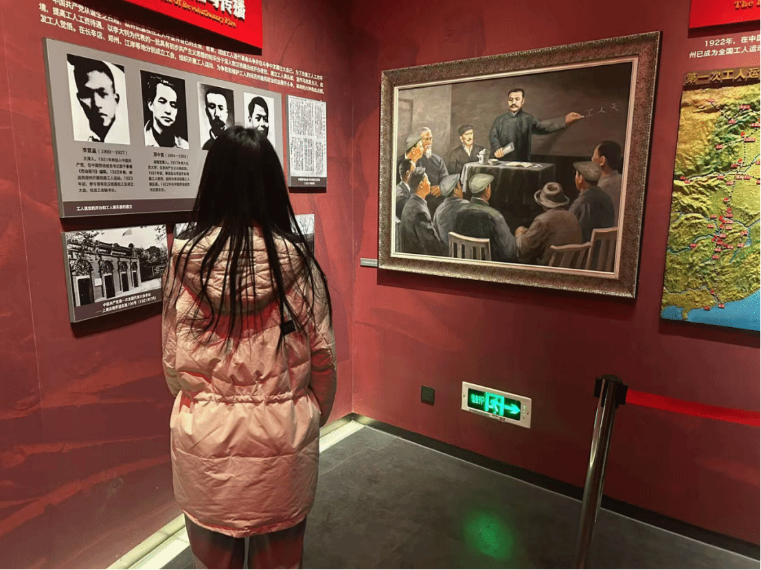 1月15日,团队前往二七纪念馆。这里记录了京汉铁路工人大罢工期间,广大工人在中国共产党的领导下,团结一致、英勇奋斗的历史。纪念馆内展品丰富,包括历史照片、文献资料、实物展示等,带领大家仿佛回到了那个硝烟弥漫的年代。