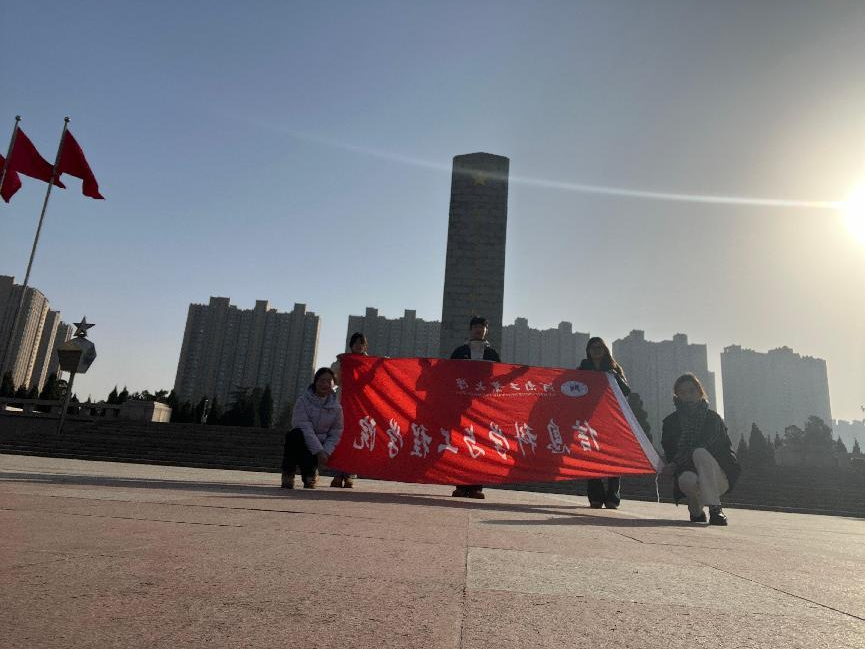 图一 团队成员在烈士纪念碑前合影留念