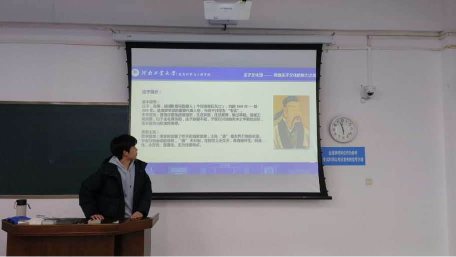 在充分的准备之后,两名知识储备丰富的队员分别为大家详细介绍了庄子及其哲学思想、庄子文化馆的基本情况。他们的讲解涵盖了庄子所处的时代背景、其思想体系的形成过程以及文化馆的特色展品和布局,让队员们对即将开展的实践活动有了更全面、更深入的了解,为后续工作筑牢了知识根基。