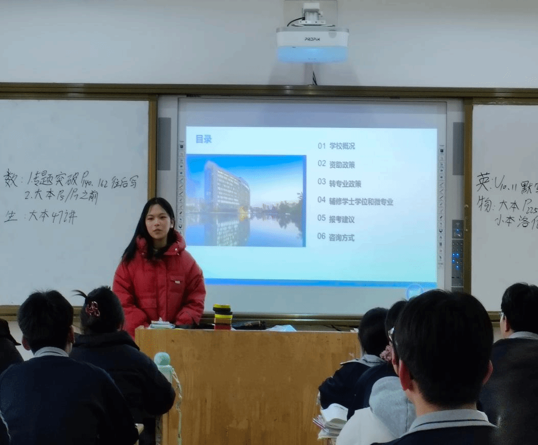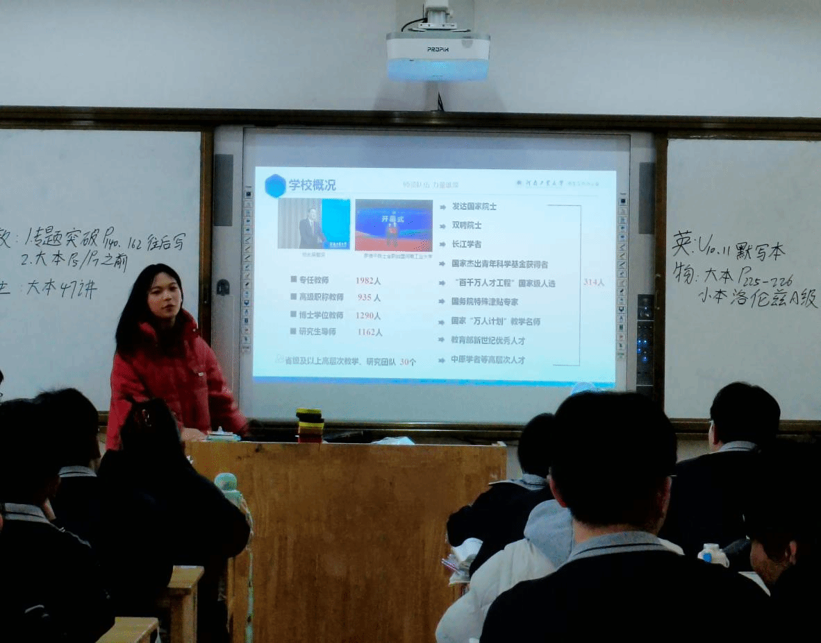 活动开始,播放工大宣传片,展现校园教学楼、图书馆、实验室等场景,令学弟学妹们心生向往。随后,王艺飘同学结合PPT宣讲,介绍工大历史文化,讲述工科专业实际项目案例、文科专业优秀学生成果,凸显专业价值与潜力。
