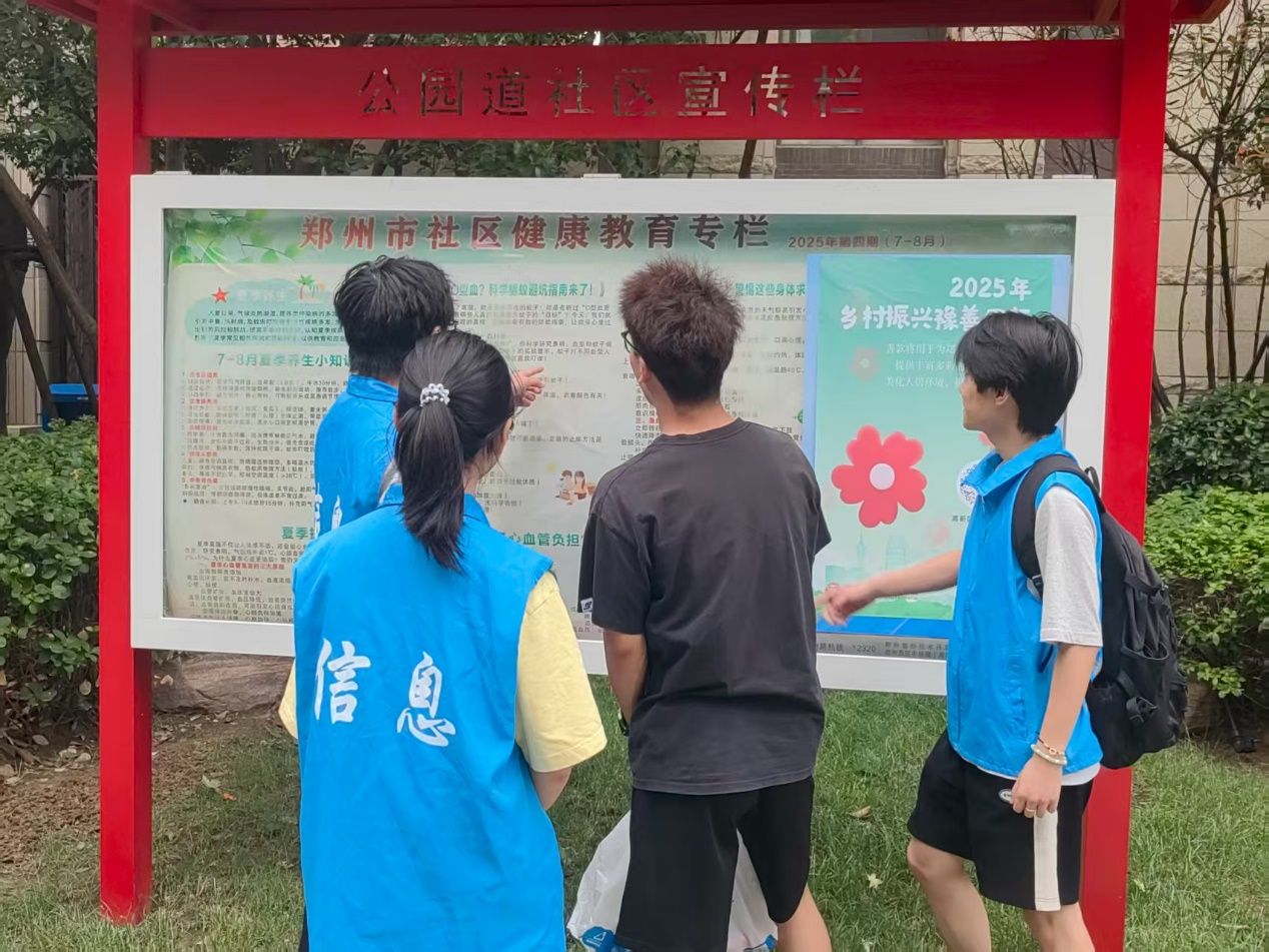 暑期社会实践团队走进郑州市高新区公园道社区,开展以“笃行践初心,致远筑青春”为主题的志愿服务活动。团队成员分工合作,围绕消防知识普及、环境清理、杂物整理及生活常识讲解等内容,为社区居民提供贴心服务。