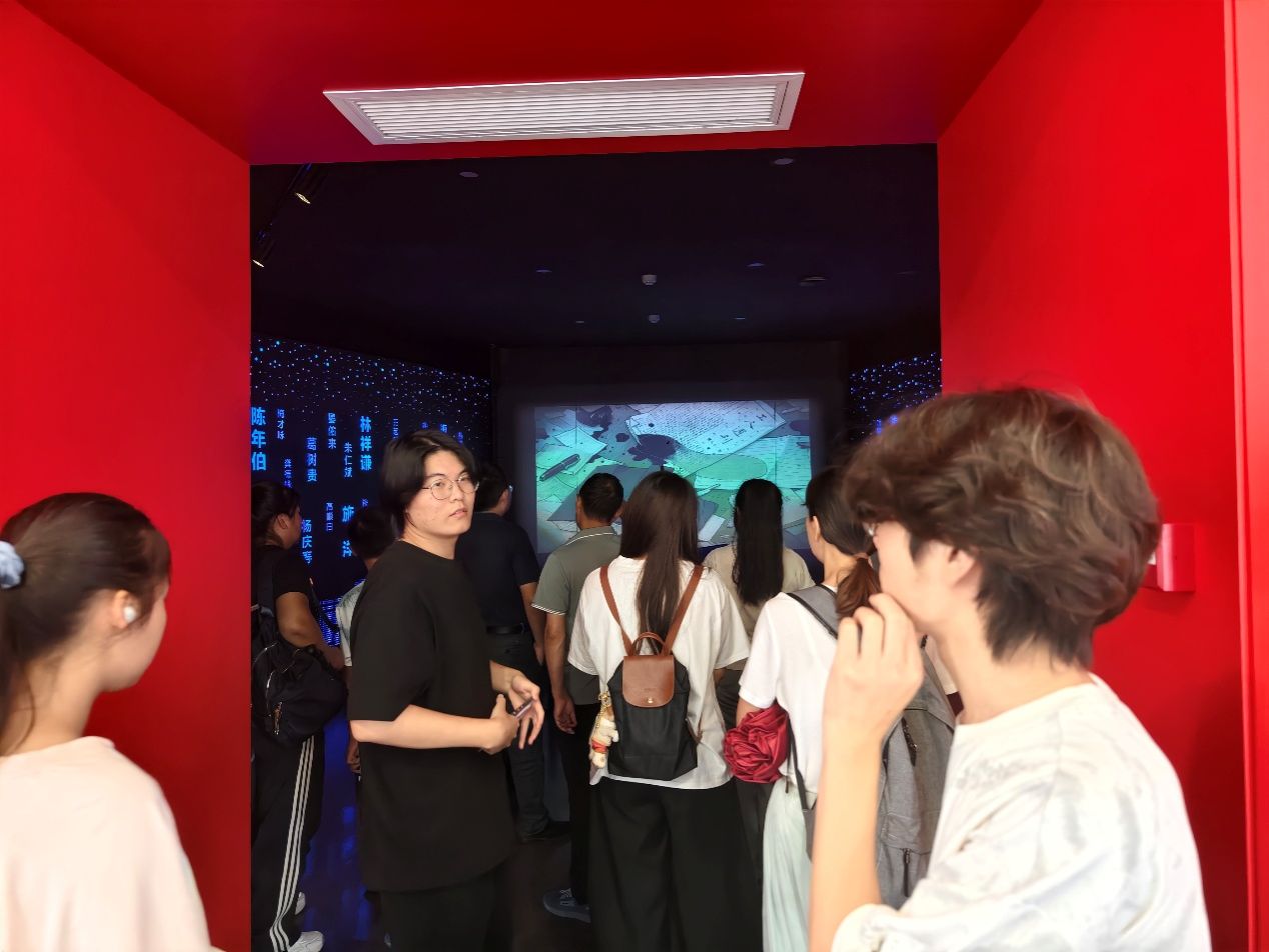 8月27日上午实践团前往二七纪念堂。作为京汉铁路总工会成立大会旧址,纪念堂内复原的历史场景与沉浸式展览,生动再现了工人运动波澜壮阔的历程。学子们通过情景剧演绎、互动问答等形式,深入理解“团结斗争、敢于胜利”的革命精神内涵。